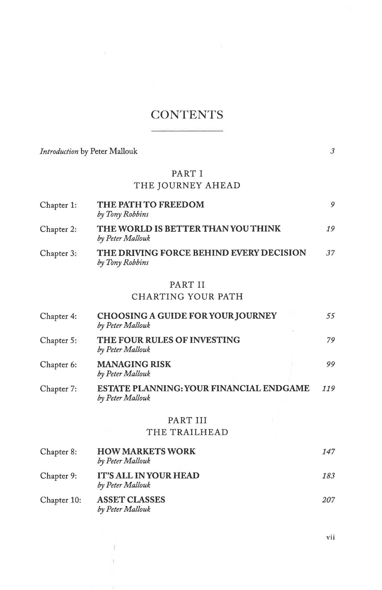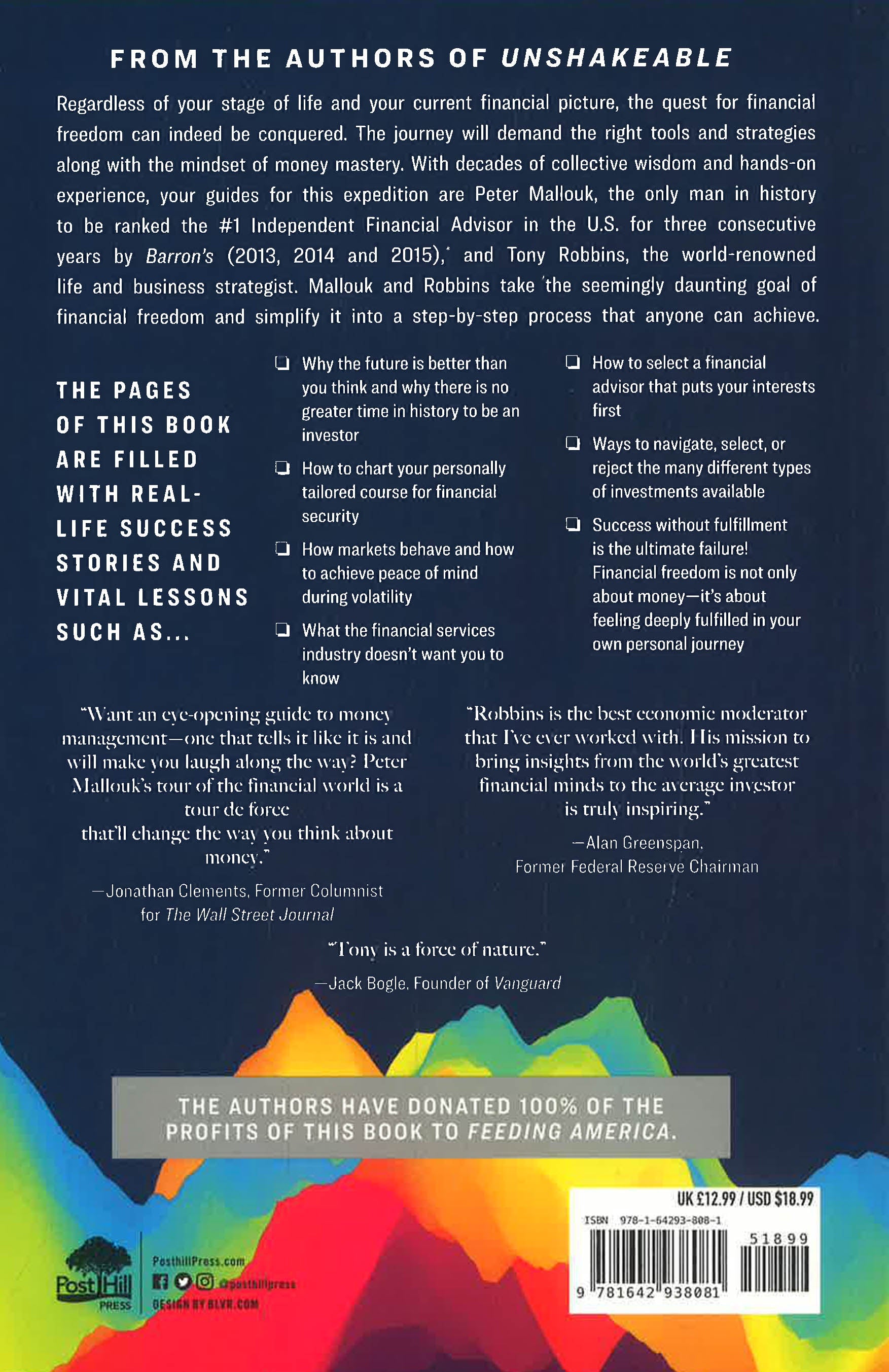 Regardless of your stage of life and your current financial picture, the quest for financial freedom can indeed be conquered. The journey will demand the right tools and strategies along with the mindset of money mastery. With decades of collective wisdom and hands-on experience, your guides for this expedition are Peter Mallouk, the only man in history to be ranked the #1 Financial Advisor in the U.S. for three consecutive years by Barron’s (2013, 2014, 2015), and Tony Robbins, the world-renowned life and business strategist. Mallouk and Robbins take the seemingly daunting goal of financial freedom and simplify it into a step-by-step process that anyone can achieve.