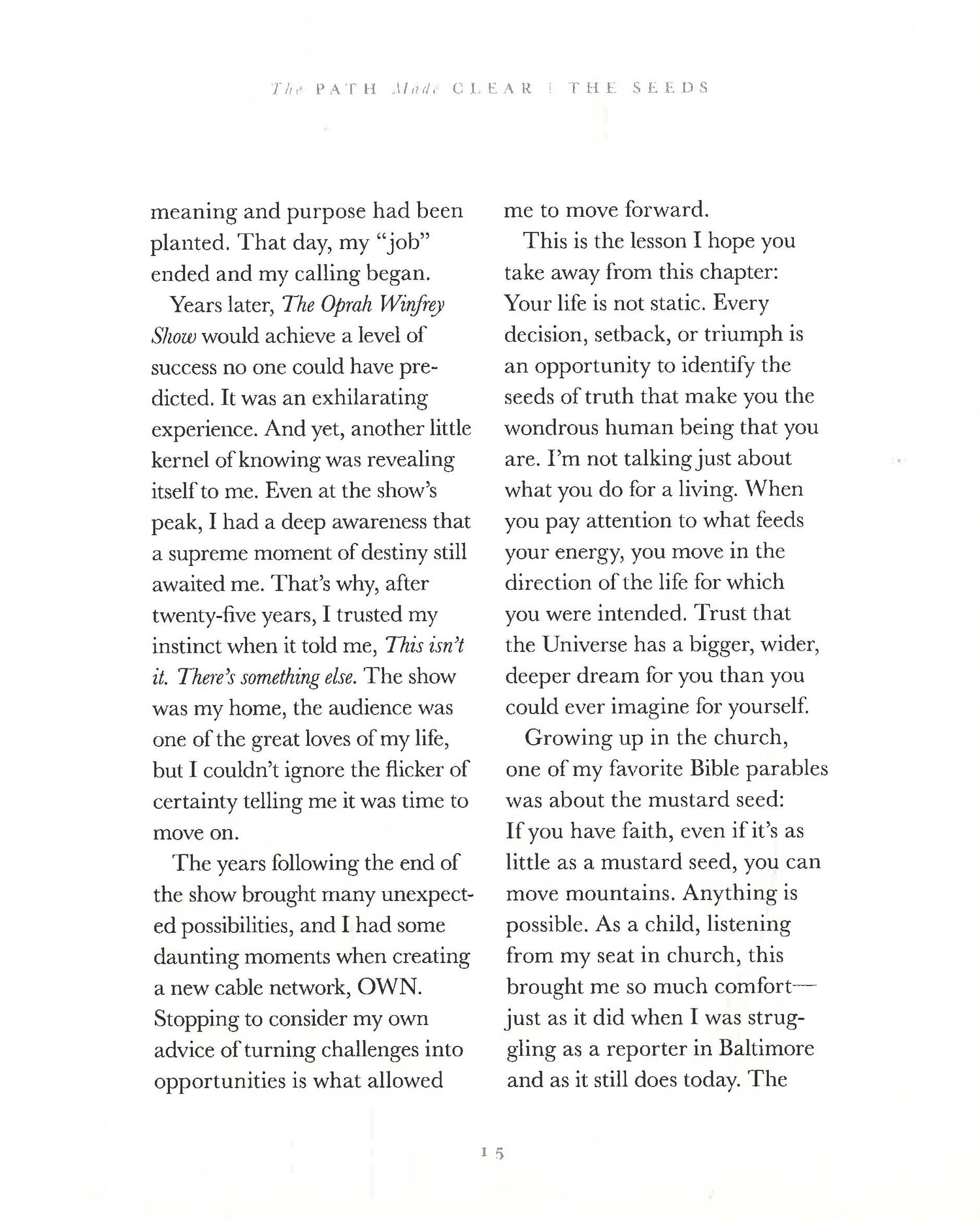 The Path Made Clear, Oprah shares what she sees as a guide for activating your deepest vision of yourself, offering the framework for creating not just a life of success, but one of significance. The book’s ten chapters are organized to help you recognize the important milestones along the road to self-discovery, laying out what you really need in order to achieve personal contentment, and what life’s detours are there to teach us.