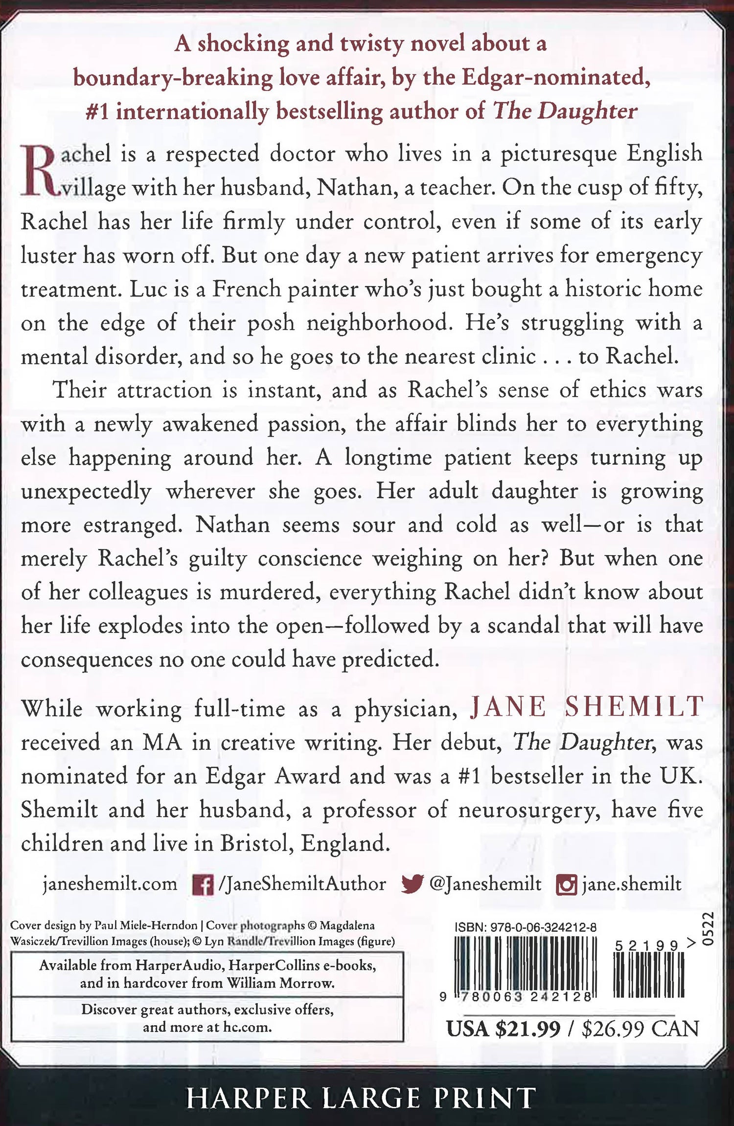 A shocking and twisty novel of psychological suspense about a boundary-breaking love affair between a doctor and her patient, by Jane Shemilt, Edgar-nominated, #1 international bestselling author of The Daughter.