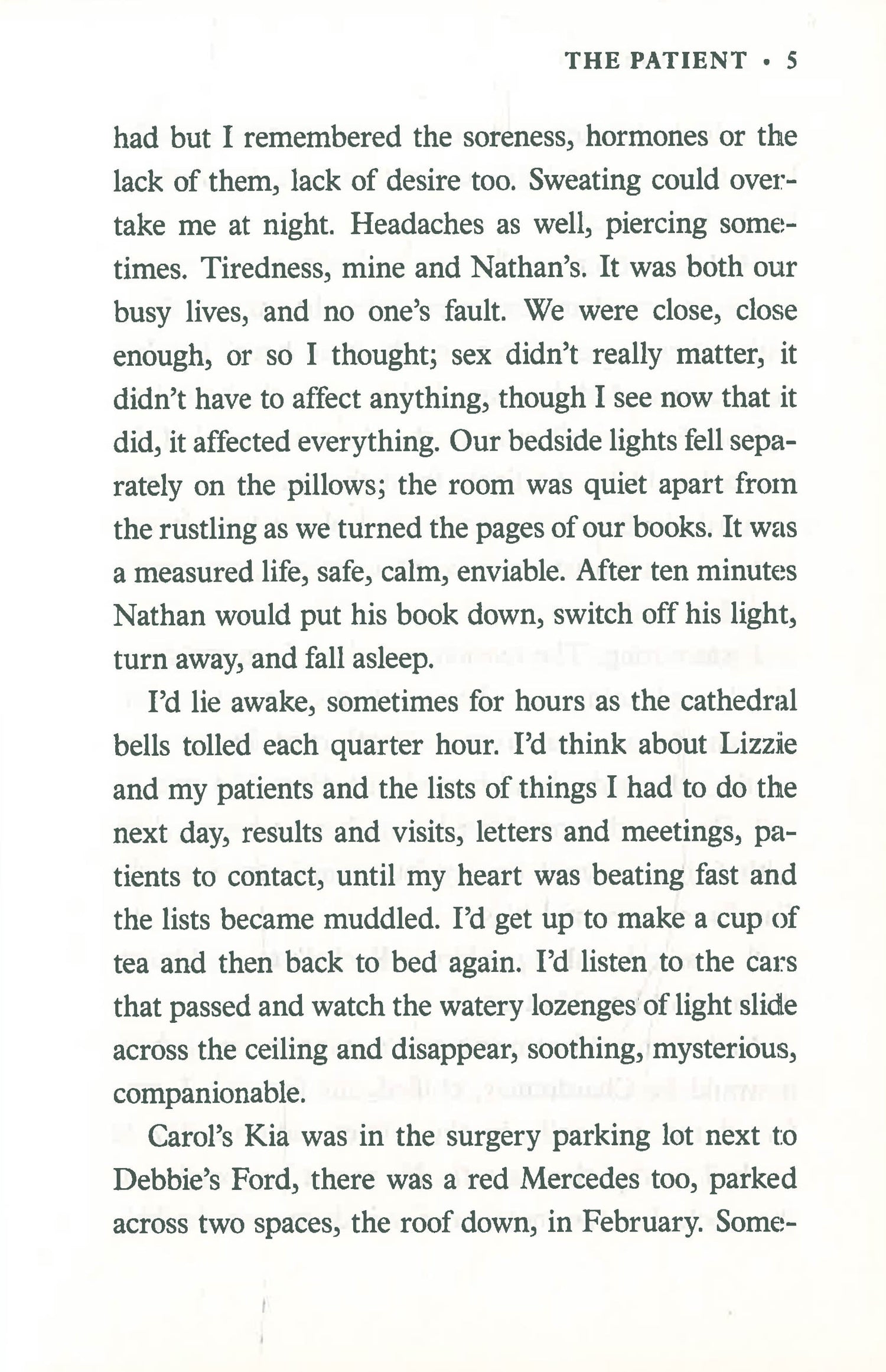 Rachel is a respected doctor who lives in a picturesque and affluent English village where her husband Nathan teaches at an elite private school. Competent, unflappable, and nearing 50, Rachel has everything in her life firmly in her control, even if some of its early luster has worn off. But one day a new patient arrives at her practice for emergency treatment. Luc is a French painter married to a wealthy American woman who’s just bought and restored a historic home on the edge of Rachel’s posh neighborhood. The couple has only recently arrived, but Luc is struggling with a mental disorder, and so he goes to the nearest clinic…to Rachel.