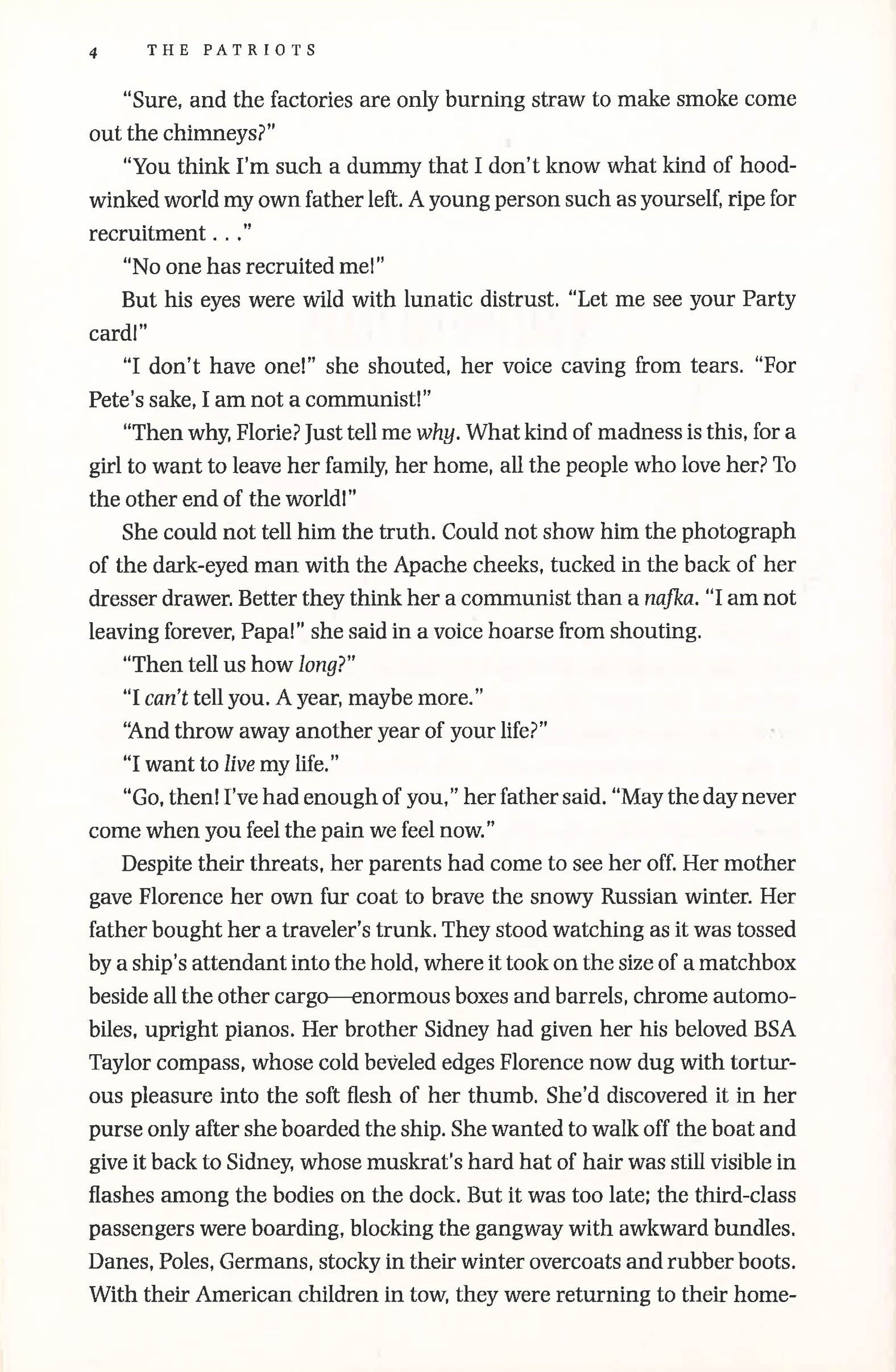 A sweeping multigenerational novel about idealism, betrayal, and family secrets set in the U.S. and Russia, from one of Granta's Best of Young American Novelists When the Great Depression hits, Florence Fein leaves Brooklyn College for a job in Moscow--and the promise of love and independence. But once in Russia, she quickly becomes entangled in a country she can't escape. Many years later, Florence's son, Julian, immigrates back to the United States, though his work in the oil industry takes him on frequent visits to Moscow. When he learns that Florence's KGB file has been opened, he arranges a business trip to uncover the truth about his mother, and to convince his son, Lenny--trying to make his fortune in Putin's cutthroat Russia--to return home. What Julian discovers is both chilling and heartbreaking: an untold story of a generation of Americans abandoned by their country, and the secret history of two rival nations colluding under the cover of enmity. The Patriots is a riveting evocation of the Cold War years, told with brilliant insight and extraordinary skill. Alternating between Florence's and Julian's perspectives, it is at once a mother-son story and a tale of two countries bound in a dialectic dance; a love story and a spy story; both a grand, old-fashioned epic and a contemporary novel of ideas. Through the history of one family moving back and forth between continents over three generations, The Patriots is a poignant tale of the power of love, the rewards and risks of friendship, and the secrets parents and children keep from one another. *This book may have remainder mark*