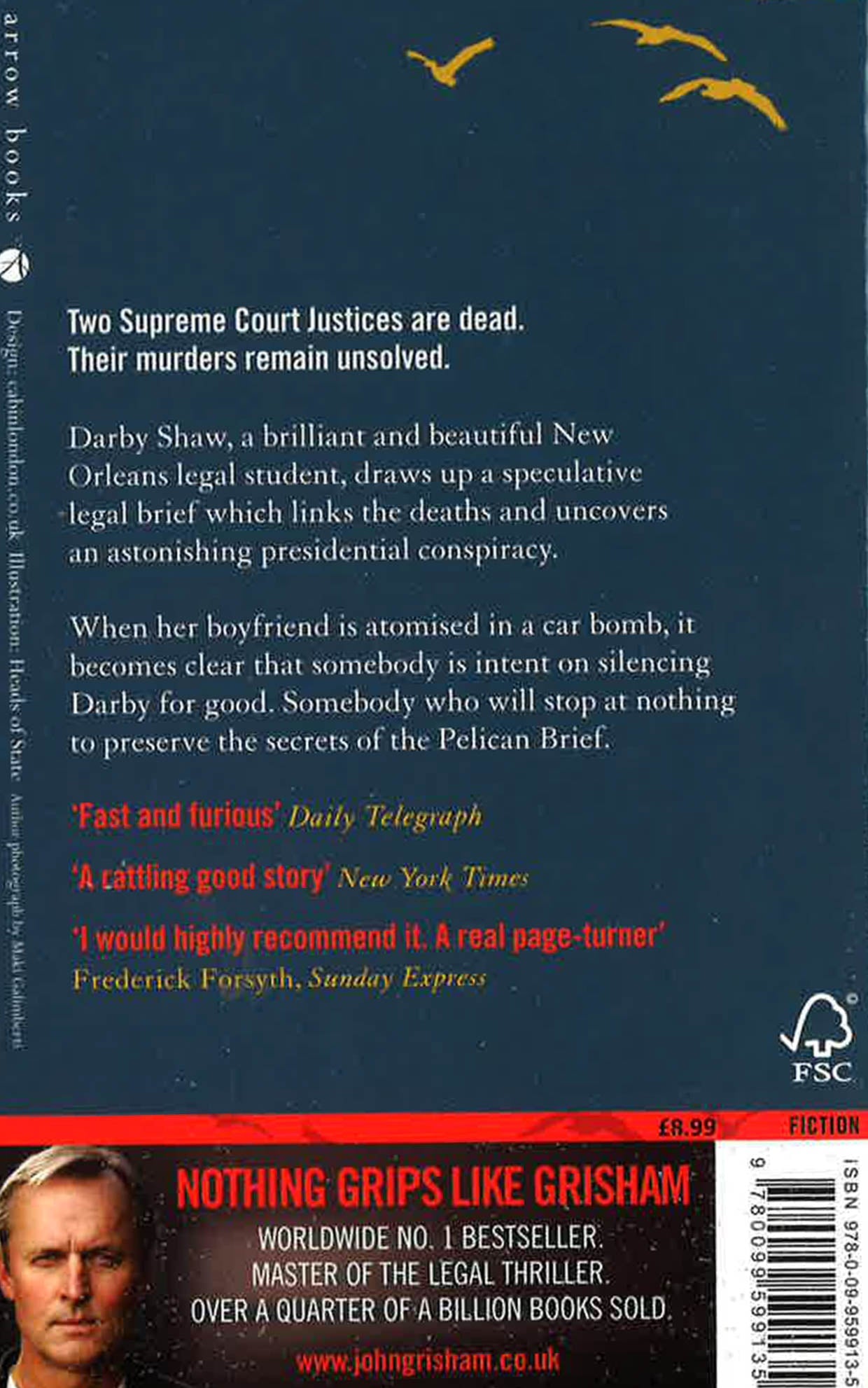 A gripping fence from start to finish ... Two Supreme Court Justices are dead and their murders remain unsolved ... 1 bestselling master thriller writerDarby Shaw, and brilliant and beautiful New Orleans legal student, draws up and speculative legal brief which links the deaths and uncovers an astonishing presidential conspiracy.