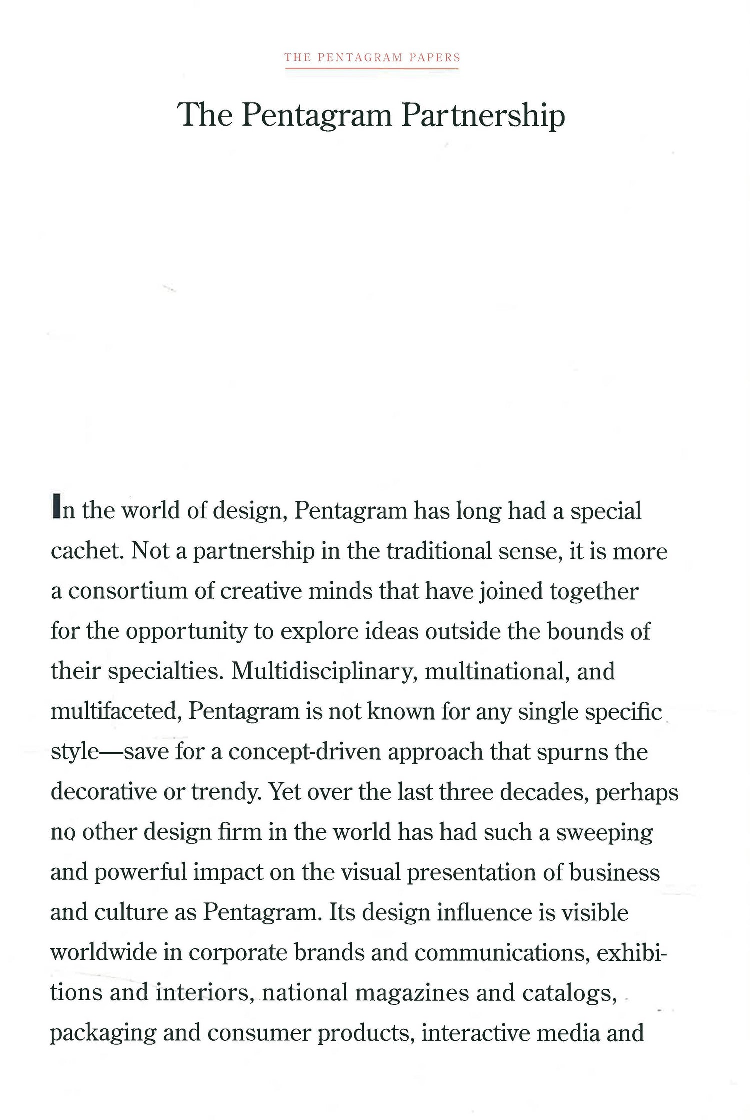 The celebrated global design firm Pentagram produces a series of idiosyncratic and influential annual documents, known as the Pentagram Papers, illuminating on the subject of creative inspiration and vital to the design legacy of this landmark firm. Reproductions and in-depth discussion illuminate each Papers origins and genesis.