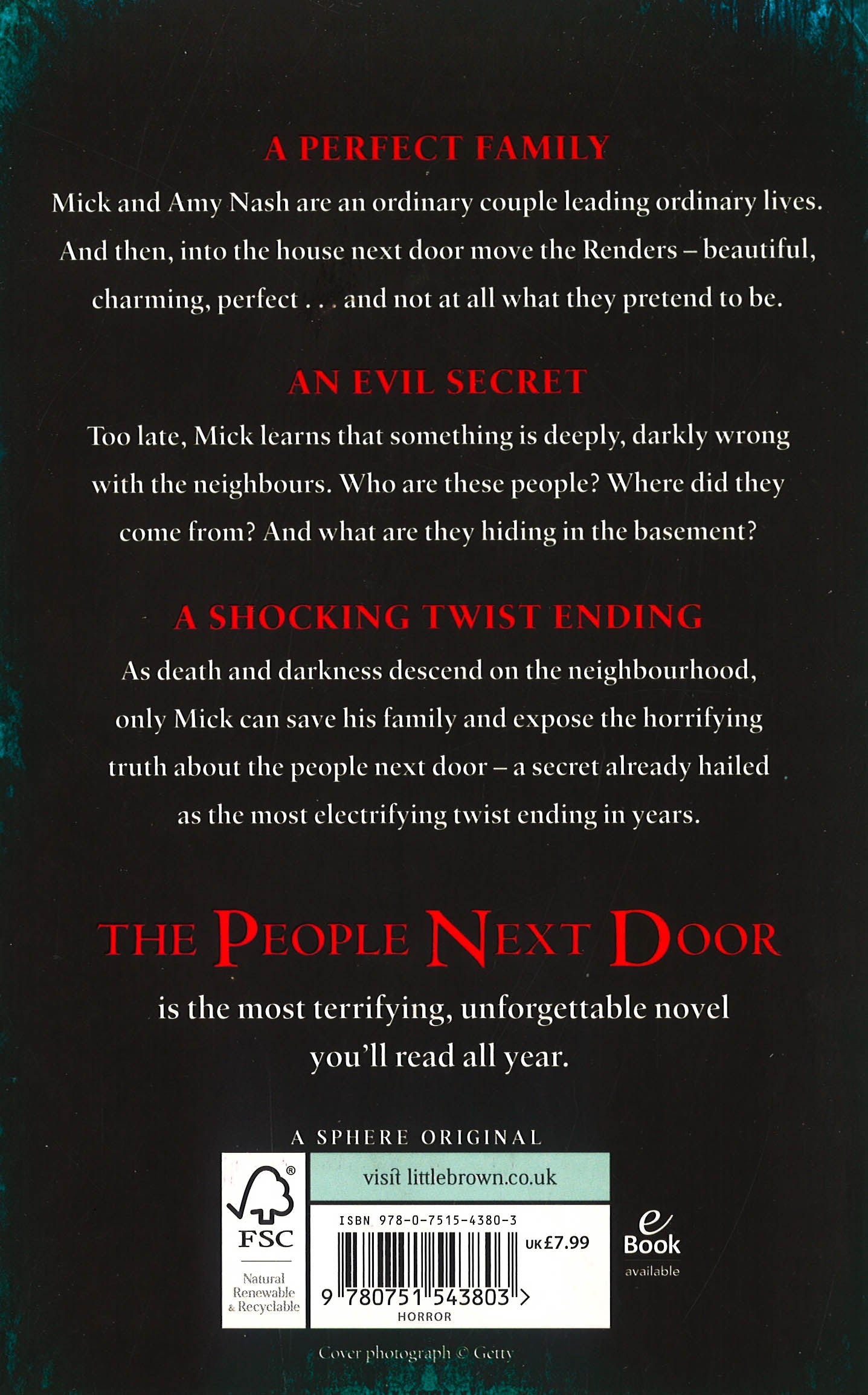 A PERFECT FAMILYMick and Amy Nash are an ordinary couple leading ordinary lives. And then, into the house next door move the Renders - beautiful, charming, perfect . . . and not at all what they pretend to be. AN EVIL SECRETToo late Mick learns that something is deeply, darkly wrong with the neighbours. Who are these people? Where did they come from? And what are they hiding in the basement?A SHOCKING TWIST ENDING As death and darkness descend on the neighbourhood, only Mick can save his family and expose the horrifying truth about the people next door - a secret already hailed as the most electrifying twist ending in years.