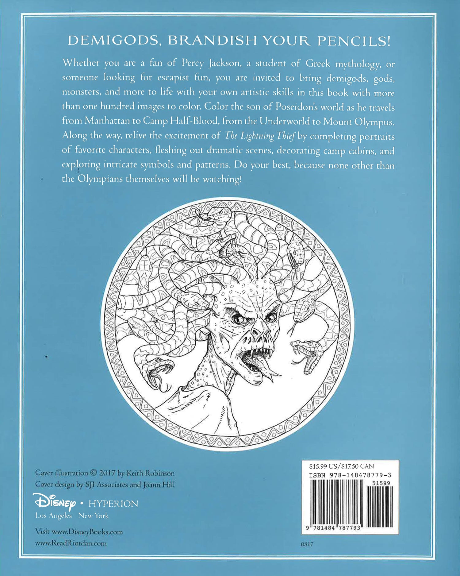 Over the past decade, millions of young readers, parents, and teachers have come to adore Rick Riordan's classic series Percy Jackson and the Olympians, which made ancient Greek mythology contemporary, relevant, and entertaining as it turned kids on to reading. Now fans can literally color Percy's world with the amusing portraits, dramatic scenes, and intricate designs on every spread of this large format paperback. This book is a great way to introduce young children to the series, to allow older fans to reminisce, and to augment classroom units on Greek mythology.