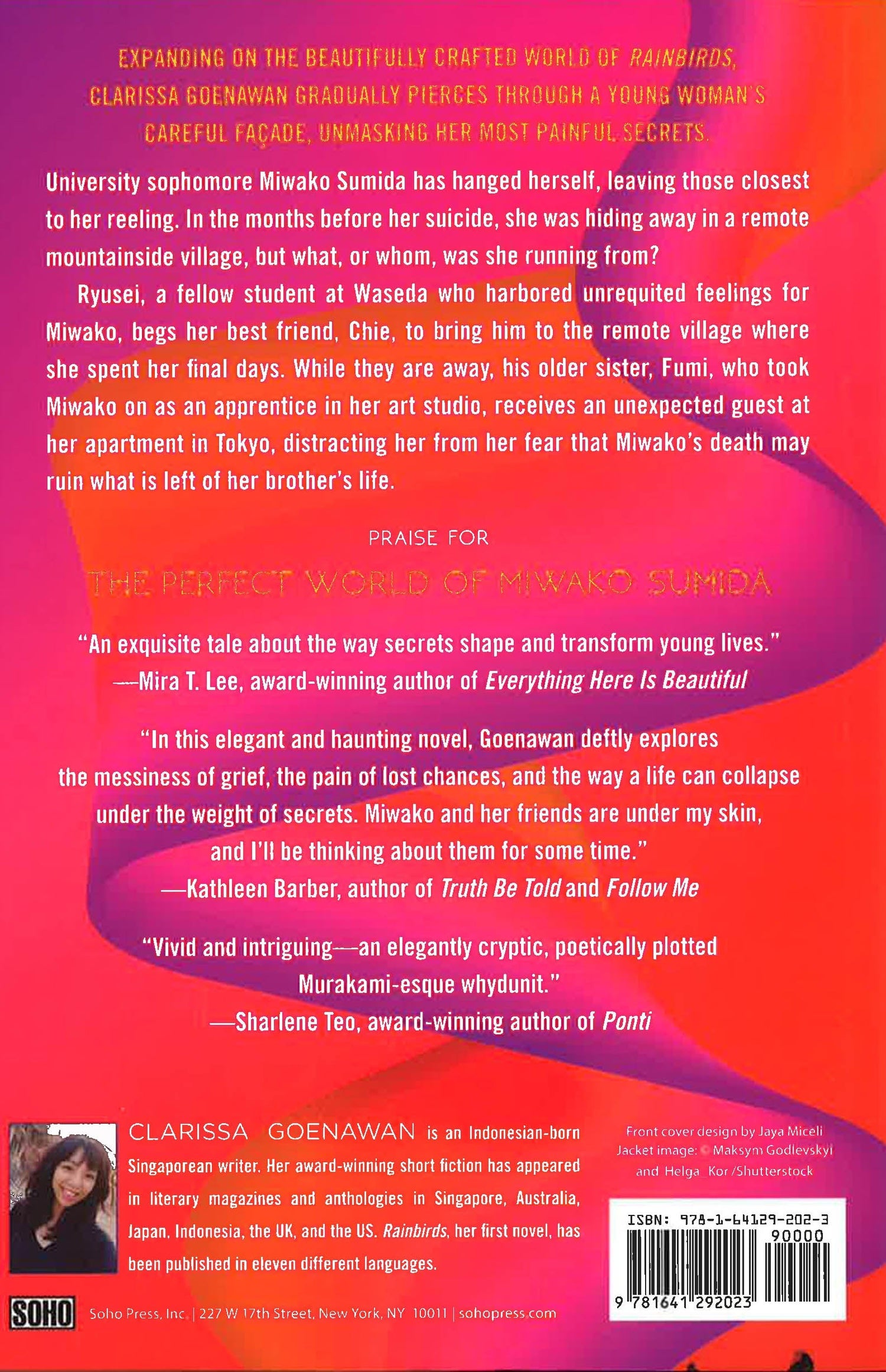 To Ryusei, a fellow student at Waseda; Chie, Miwako’s best friend; and Fumi, Ryusei’s older sister, Miwako was more than the blunt, no-nonsense person she projected to the world. Heartbroken, Ryusei begs Chie to take him to the village where Miwako spent her final days. While he is away, Fumi receives an unexpected guest at their shared apartment in Tokyo, increasingly fearful that Miwako’s death may ruin what is left of her brother’s life. Expanding on the beautifully crafted world of Rainbirds, Clarissa Goenawan gradually pierces through a young woman’s careful façade, unmasking her most painful secrets.