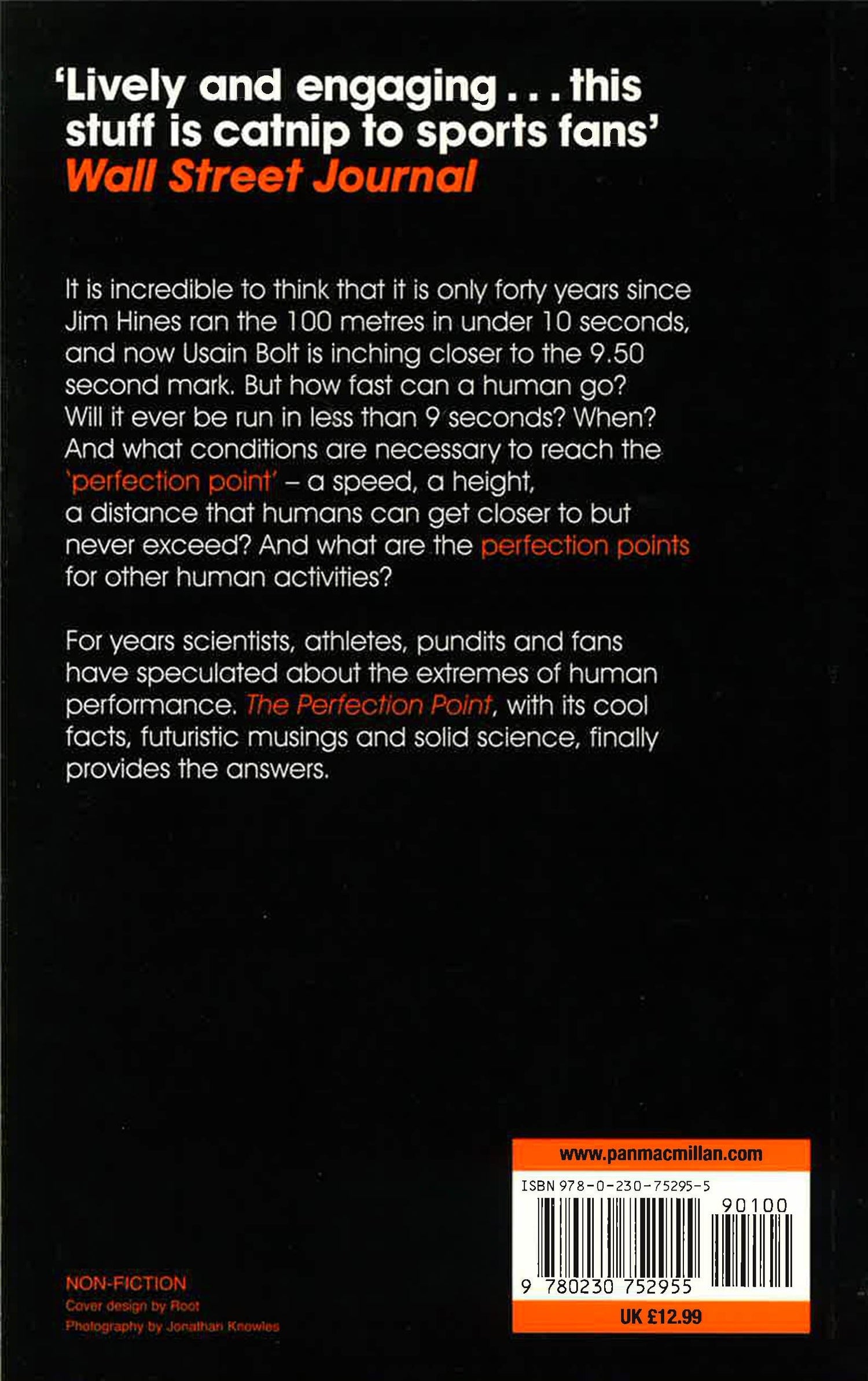 The Perfection Point is a pacy and fascinating look at the science behind the extremes of human performance, which identifies the absolute limits the human body can go to, whether it is running, lifting, throwing or even holding one's breath. It is incredible to think that it is only forty years since Jim Hines ran the 100 metres in under ten seconds, and now Usain Bolt is inching closer to the 9.50 second mark. But how far can humans actually go? Is it possible that one day the 100 metres will be run in less than 9 seconds? When will this happen? And what biological, physical and environmental conditions are necessary to reach the 'perfection point' - a speed, a height, a distance that humans can get closer to but never exceed? And what are the 'perfection points' for other human activities? Combining sold scientific research with engrossing counter-narrative sections, The Perfection Point is chock full of cool facts and 'what ifs' that will spark the imagination. For years scientists, athletes, pundits and fans have speculated about the extremes of human performance. The Perfection Point finally provides the answers.