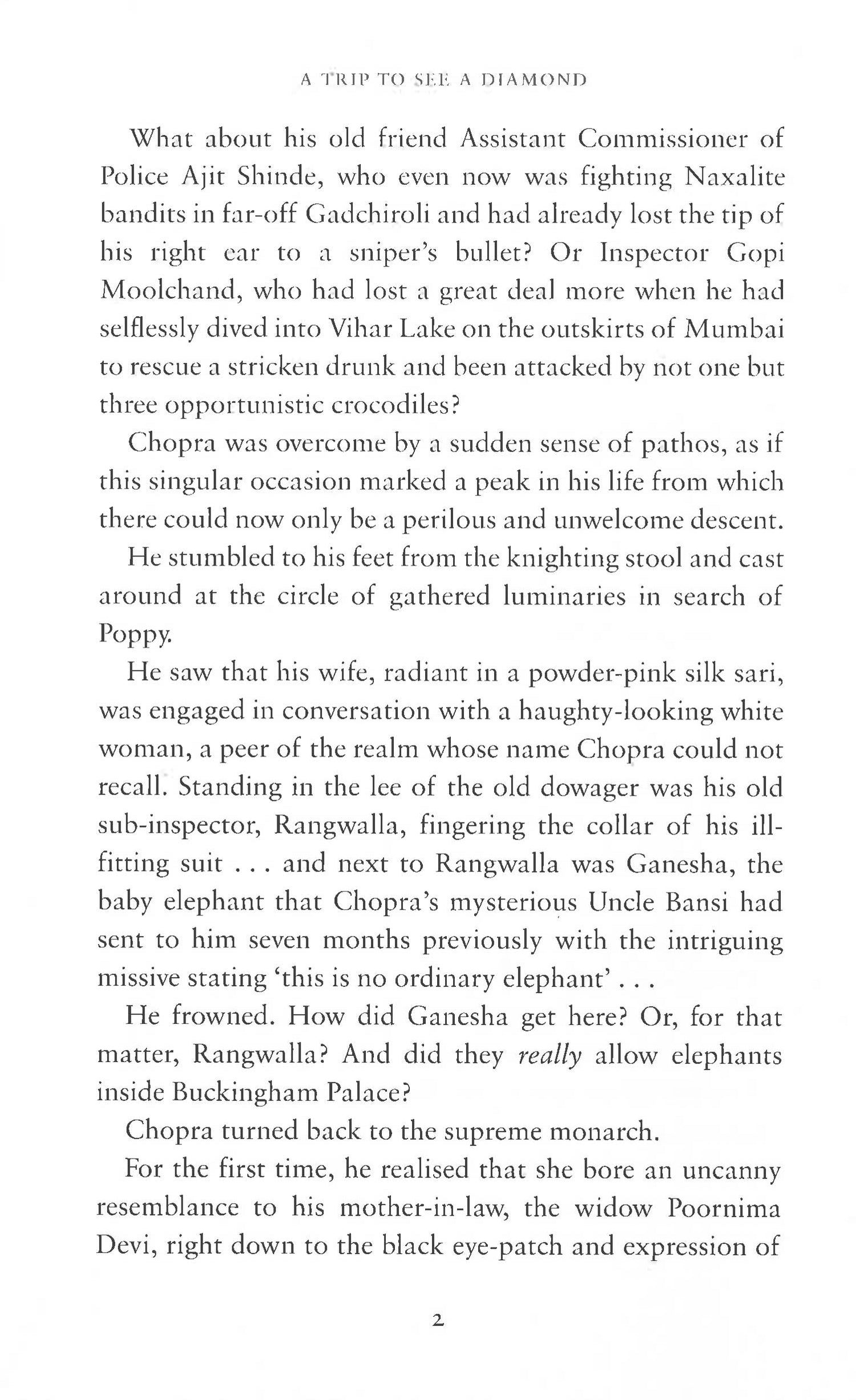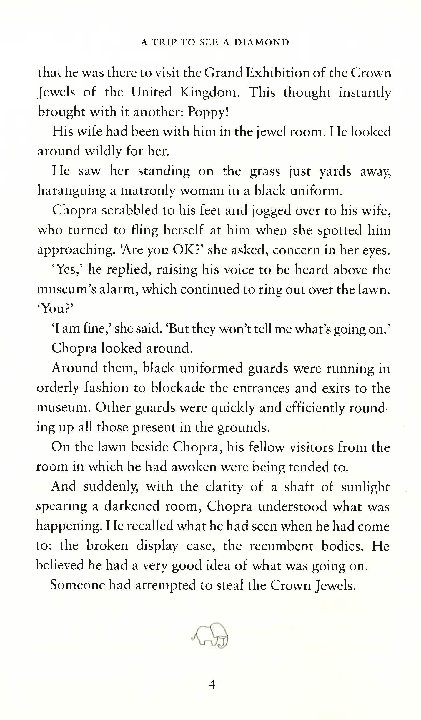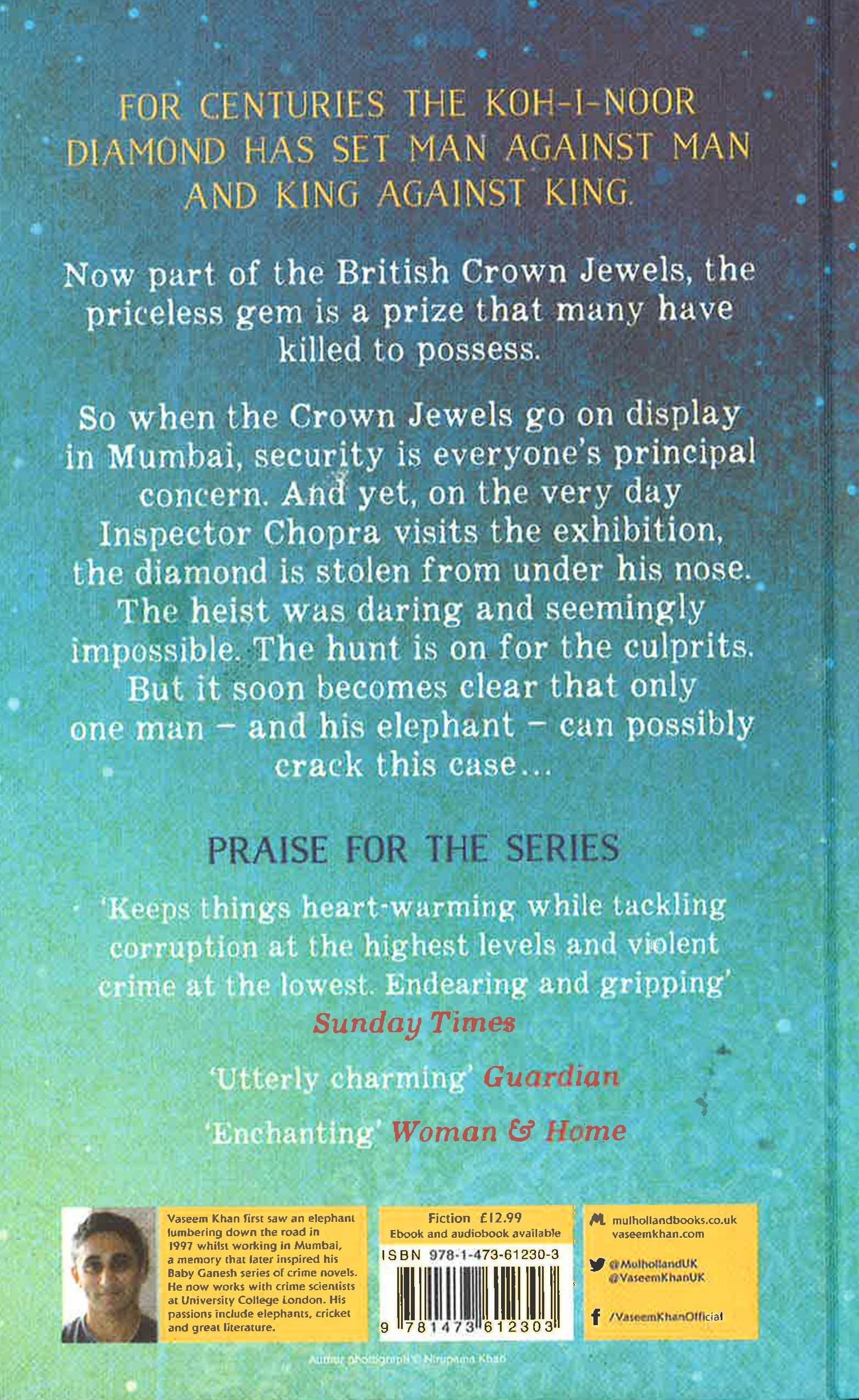 The second book in the heartwarming and charming Baby Ganesh series. For centuries the Koh-i-Noor diamond has set man against man and king against king. Now part of the British Crown Jewels, the priceless gem is a prize that many have killed to possess. So when the Crown Jewels go on display in Mumbai, security is everyone's principal concern. And yet, on the very day Inspector Chopra visits the exhibition, the diamond is stolen from under his nose. The heist was daring and seemingly impossible. The hunt is on for the culprits. But it soon becomes clear that only one man - and his elephant - can possibly crack this case...