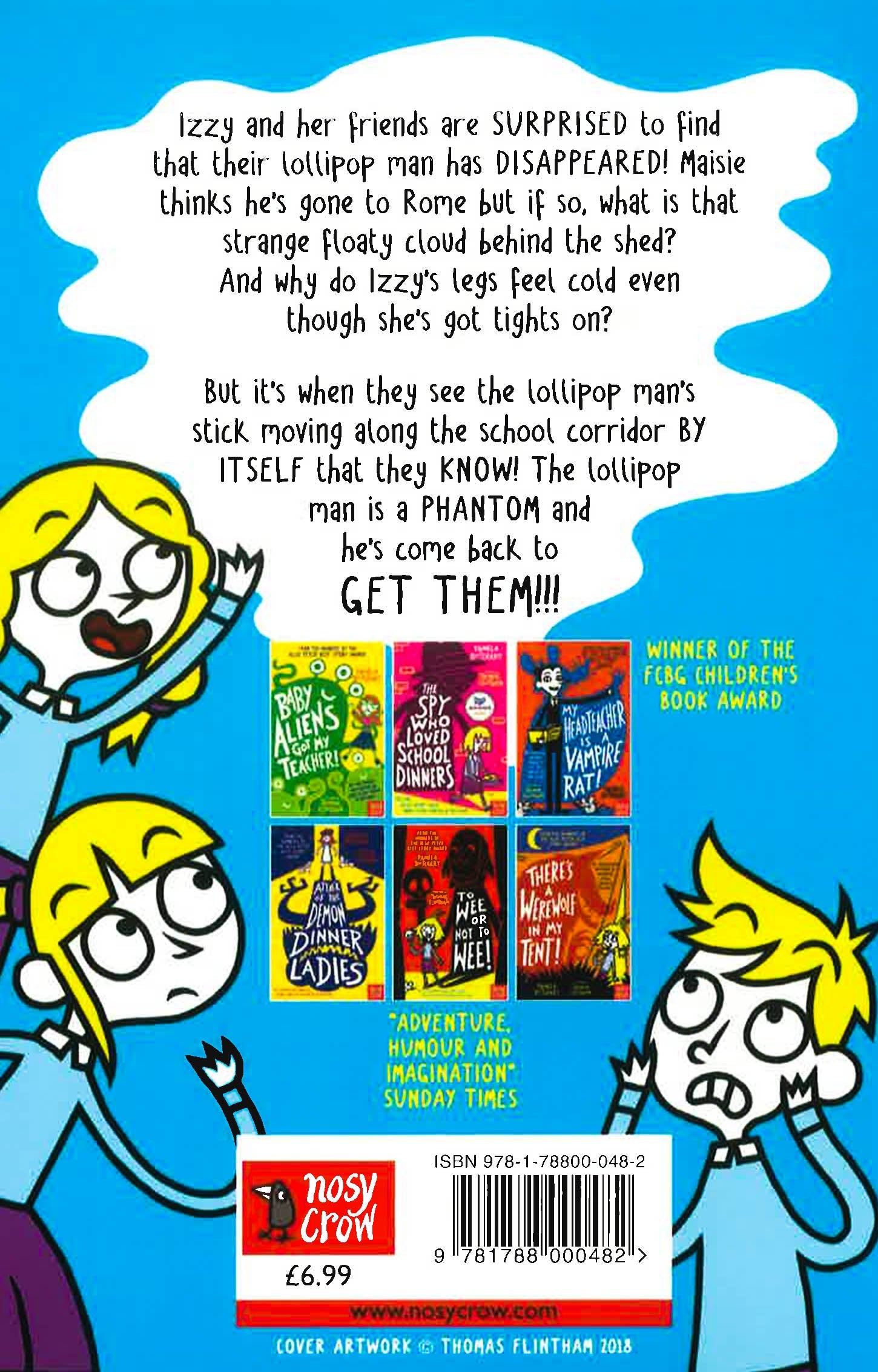 Izzy and her friends are shocked when they find their lollipop man has disappeared! Maisie thinks he's gone to Rome but if that's true, why do they keep seeing a weird white wispy cloud around the school? And why do Izzy's legs feel cold even though she's got tights on? Could it be that the lollipop man is a phantom and he's come to spook them all?! Laugh-out-loud fun from Blue Peter Award winners Pamela Butchart and Thomas Flintham.
