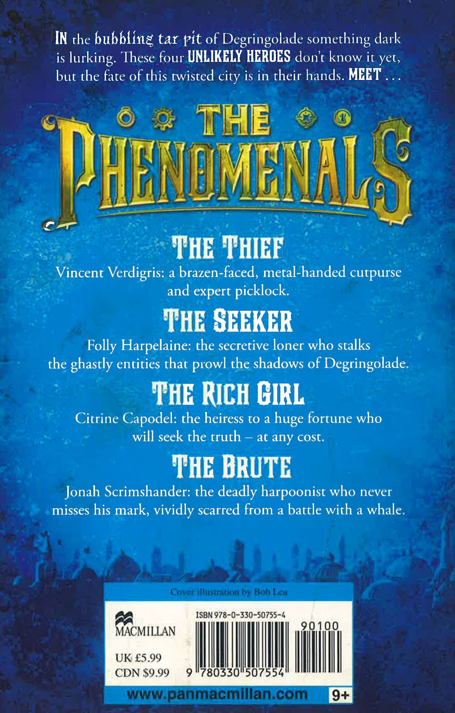 A twisted adventure of intrigue, magic and superstition from the bestselling F. E. Higgins Don't go down to the tar pits, children - for their shores are lined with the wretched wraiths of all the traitors and murderers who have drowned in its bubbling depths. In the shadows of this putrid place, an unlikely new alliance is being formed: they call them The Phenomenals, and only they can save us from a hideous fate that will befall the town if the wraiths escape their tarry shackles . . . Meet The Phenomenals: Citrine Capodel - heiress to a corrupt empire and framed for a murder she did not commit; Folly Harpelaine - a merciless destroyer of Lurids, who dabbles in the dark arts; Jonah Scrimshander - a deadly harpoonist, who has already cheated death, and Vincent Verdigris - light-fingered and even lighter on his feet.