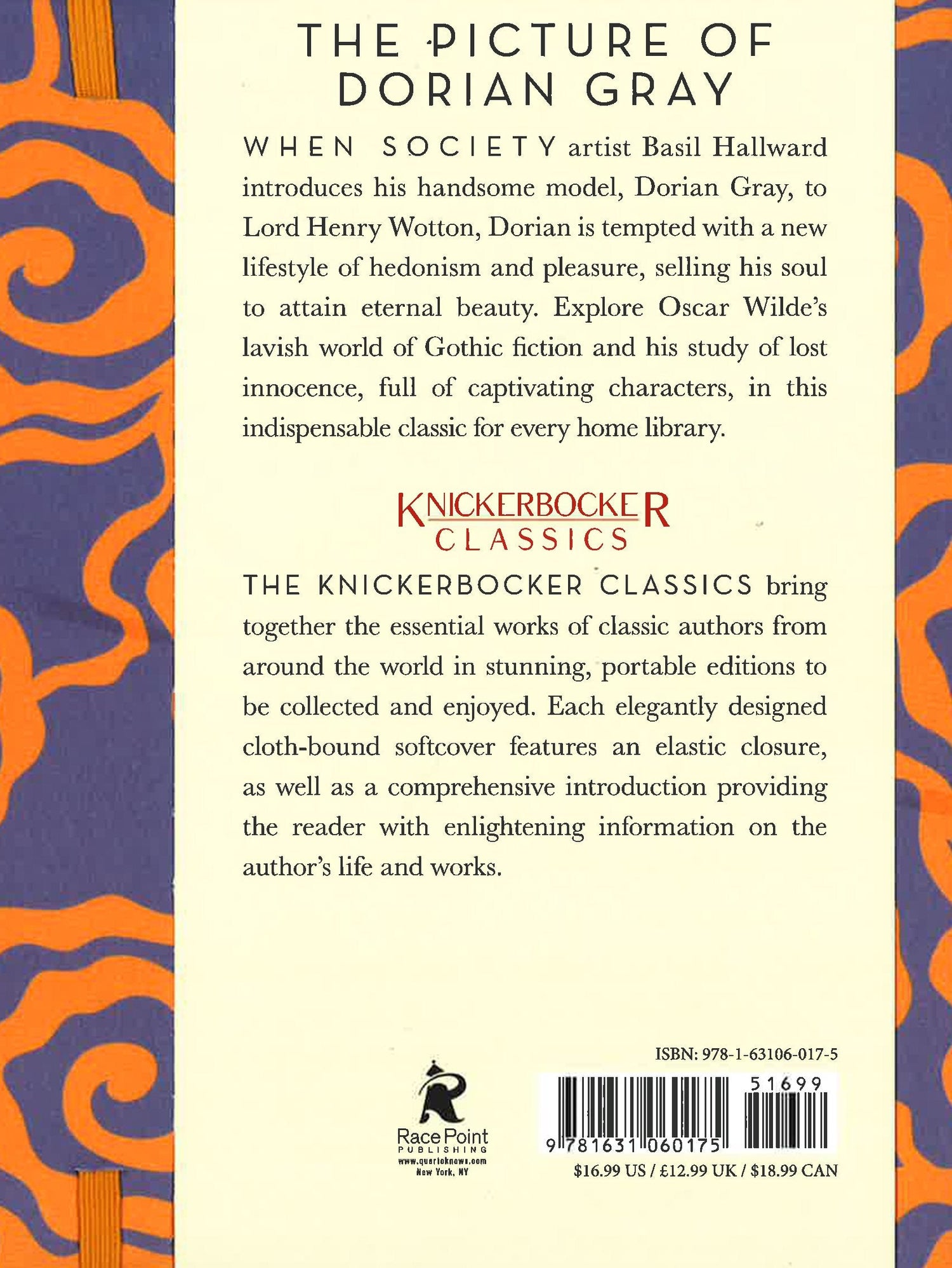 Artist Basil Hallward has sent a gift. A portrait that perfectly captures young Dorian Gray's handsome features. When Lord Henry tempts Dorian with a new lifestyle of hedonism and pleasure, he realizes that he would sell his soul for an eternity of debauchery. Oscar Wilde's only published novel, The Picture of Dorian Gray is a dark and sinful story of excess and vice. Explore Wilde's lavish world of Gothic fiction, and his study of lost innocence, full of captivating characters with this gorgeous edition. Complete and unabridged, The Portrait of Dorian Gray is an essential collectible that is both elegant and portable.