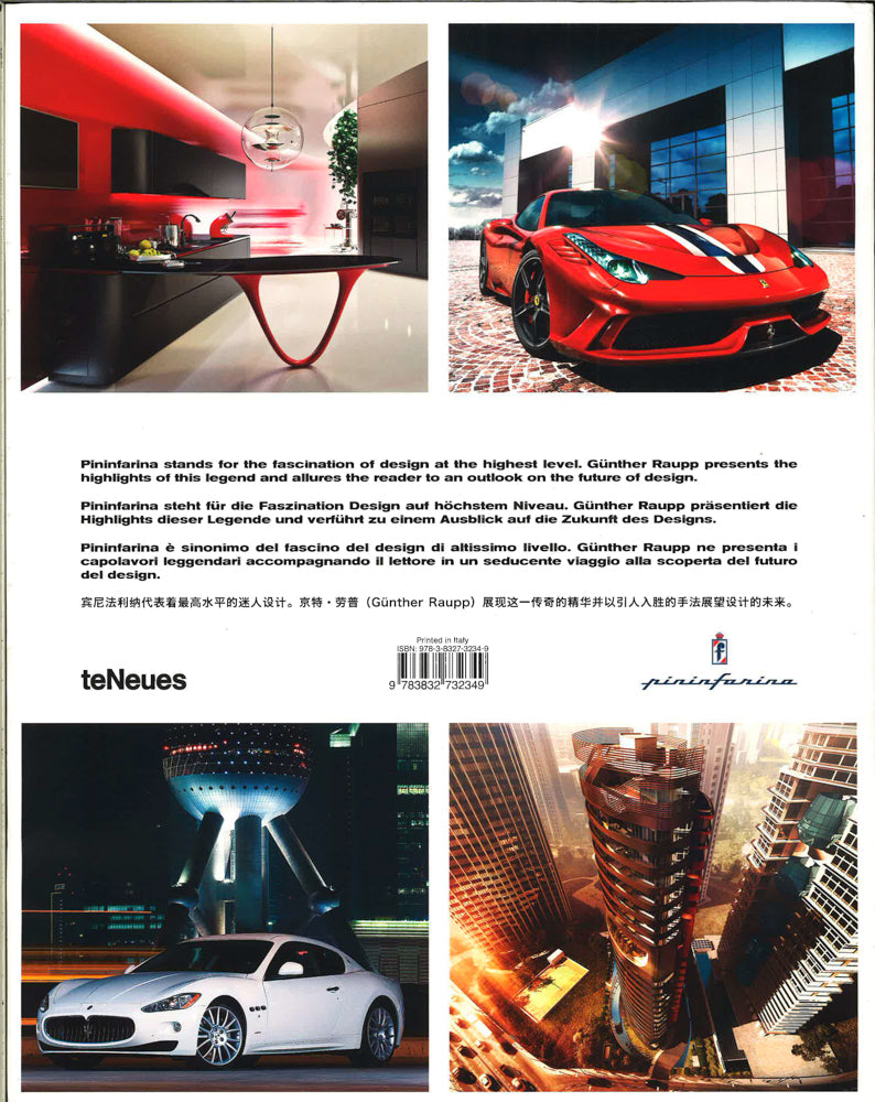 Designs from another world with spectacular concept drawings and breathtaking photographs 85 years of history and the whole spectrum of Pininfarina design - a book for design aficionados and professionals, photophiles and car fans, and everyone who enjoys true eleganceWhat is innovation? The dictionary defines it as "renewal through the use of new processes and technologies." In advertising, everything is an innovation. But what is truly innovative? Since 1930, the Pininfarina design firm of Turin, Italy, has been answering that question. This is where the Cistalia 202 was developed, the first vehicle to be added to MoMA's permanent collection. The list goes on: the interior of the new stadium for Juventus Turin, the Nash Healey Spider seen in Billy Wilder's Sabrina, and the legendary Ferrari Dino 246 and Ferrari Testarossa. However, Pininfarina is not resting on its laurels, but blasting full speed ahead into the future with an expanded portfolio while honoring its heritage. Whether it's a solution for sustainable mobility, interior designs, or household gadgets, all Pininfarina projects bear an unmistakable signature. To visually celebrate the history and influence of Pininfarina, there is no one better suited than a man who has made his own unmistakable mark on automotive photography. Gunther Raupp has spent 30 years photographing cars for Ferrari's official calendars, which enjoy a cult following among the experts. He has two successful books with teNeues, the most recent being The Ferrari Book. As a star photographer and connoisseur of industrial design, Raupp showcases a company that embodies true italianita.