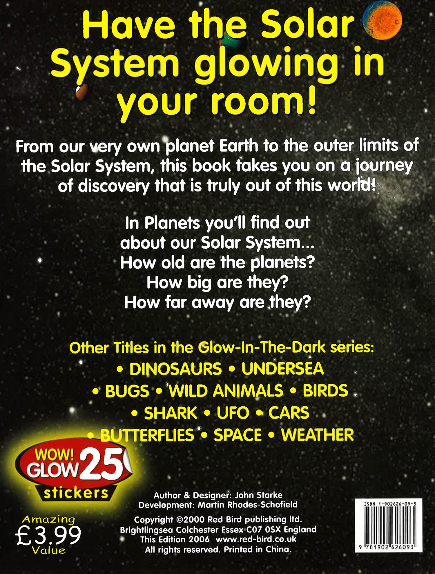 See the solar system glowing in your room! From our very own planet Earth to the outer limits of the solar system, this book takes you on a journey of discovery that is truly out of this world! In The Planets, you'll find out all about our solar system. How old are the planets? How big are they? How far away are they? Includes 25 glow-in-the-dark stickers.