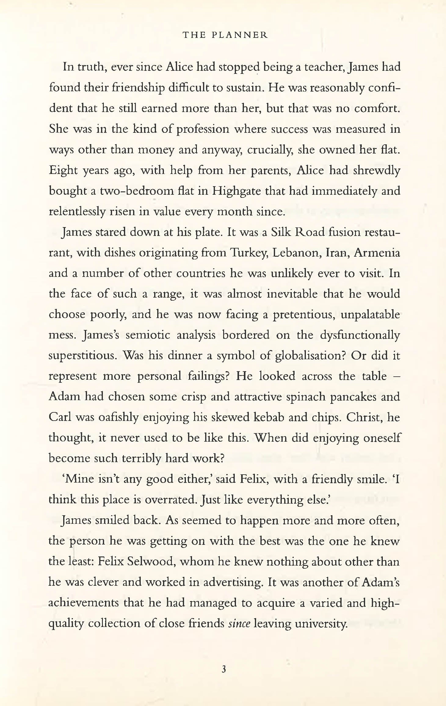 James is exactly what you'd expect from one of London's most promising, young town planners. He's cautious, respected by colleagues and performs well in team meetings. But while James understands the glitter and grime of the city better than almost anyone, he hasn't actually experienced much of it. And, as he watches his university friends blossom bewilderingly into rich and successful adults, he has the nagging sense that he has somehow fallen by the wayside. That is, until he meets Felix, who navigates the glamorous and cynical capital with sophisticated ease. Felix introduces James to a London that he has never known, and which doesn't feature in the planning manuals: a world of private clubs and executive football boxes; of book launches, contemporary art galleries, suburban drug dealers and dates with women even more exotic than the peculiar vodka shots they drink. But London is an expensive city in many ways, and the world Felix has opened up comes at a cost. James may know how to design housing estates and high streets, but is it really possible to redraw the masterplan for his own life? And what will he lose along the way?