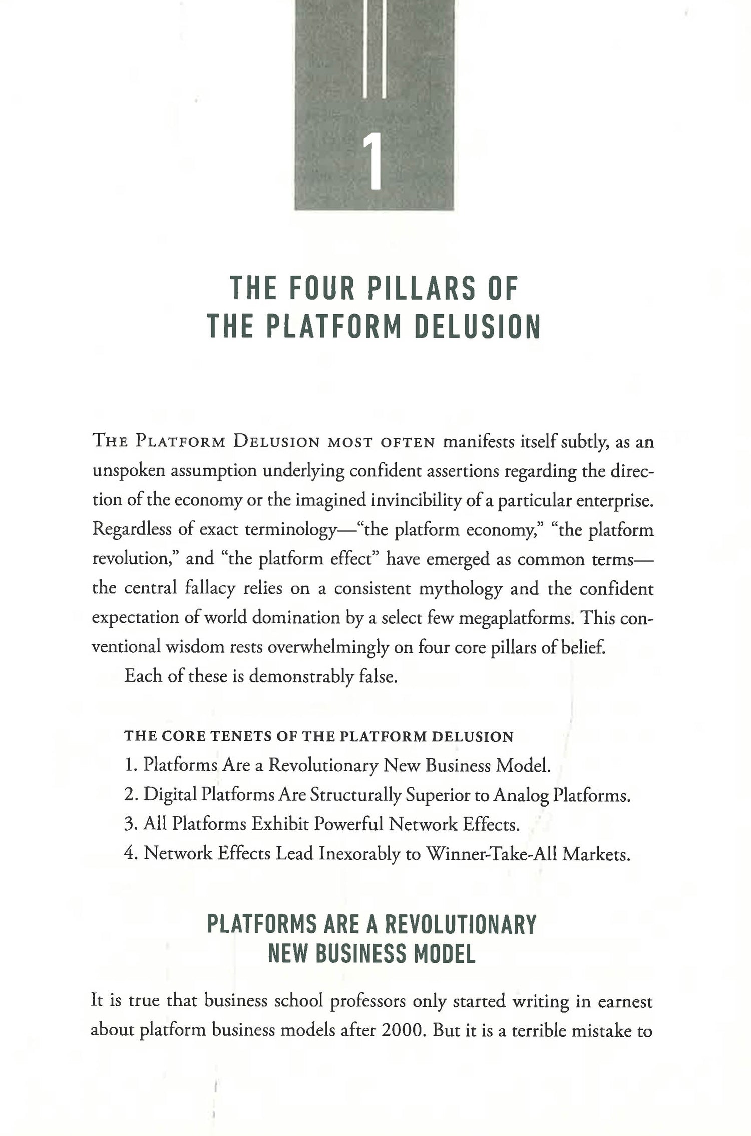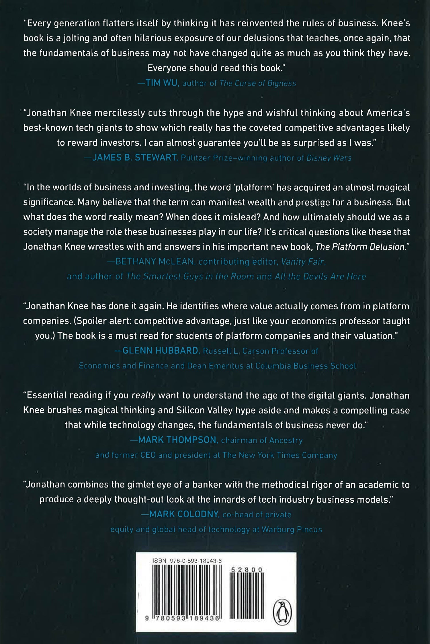 Knee explains what really makes the biggest tech companies work: a surprisingly disparate portfolio of structural advantages buttressed by shrewd acquisitions, strong management, lax regulation, and often, encouraging the myth that they are invincible to discourage competitors. By offering fresh insights into the true sources of strength and very real vulnerabilities of these companies, The Platform Delusion shows how investors, existing businesses, and startups might value them, compete with them, and imitate them.