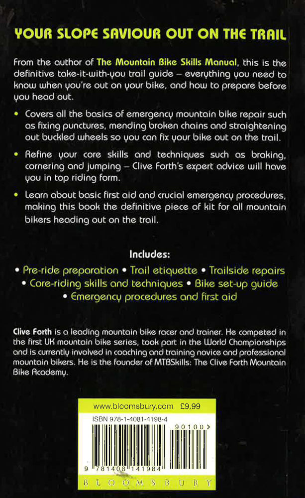From the author of The Mountain Bike Skills Manual, this is a take-it-with-you trail guide that covers everything you need to know when you're out on your bike. The emphasis is firmly on the practical, including changing your chain, adjusting your gears, fixing breaks and mending punctures - skills that a surprising number of riders lack. There is a section on getting the best out of your bike and your ride - from cornering effectively to wheelies and bunny hops - as well as information on preparation, planning, weather, nutrition and trail etiquette. Last but not least, the book contains a easy-to-follow first-aid section. Packed with colour photos and illustrations in a step-by-step format, compact, comprehensive and clear, this is a must-have companion for all mountain bikers heading out on the trail.