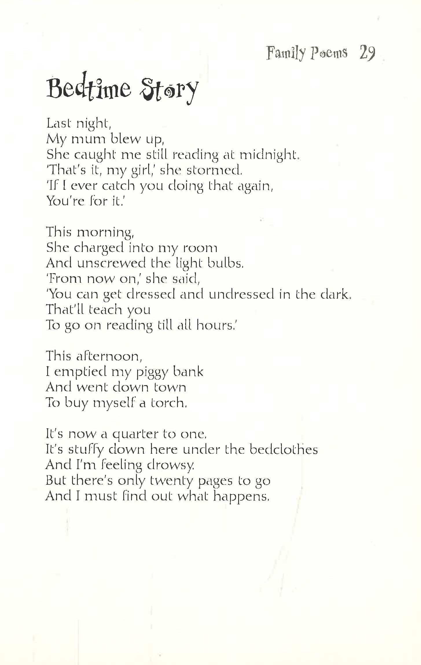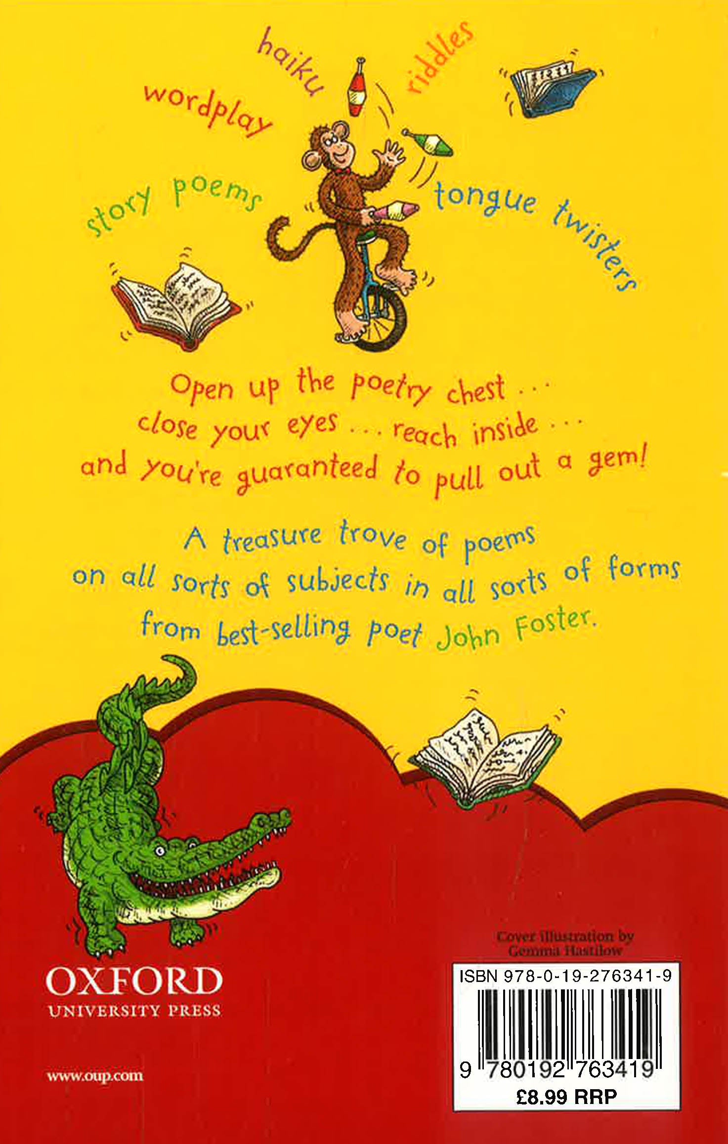 A book aimed at both trade and schools markets that brings together the best of John Foster's original poetry. There are over 250 poems divided into themed sections, in which there will be humorous and thoughtful poems sitting side by side. It includes a vast range of types of poem, such as shape poems, acrostic poems, limericks, diary poems, raps, story poems, recipe poems, which makes it the perfect collection for use in the classroom, or just to dip into.