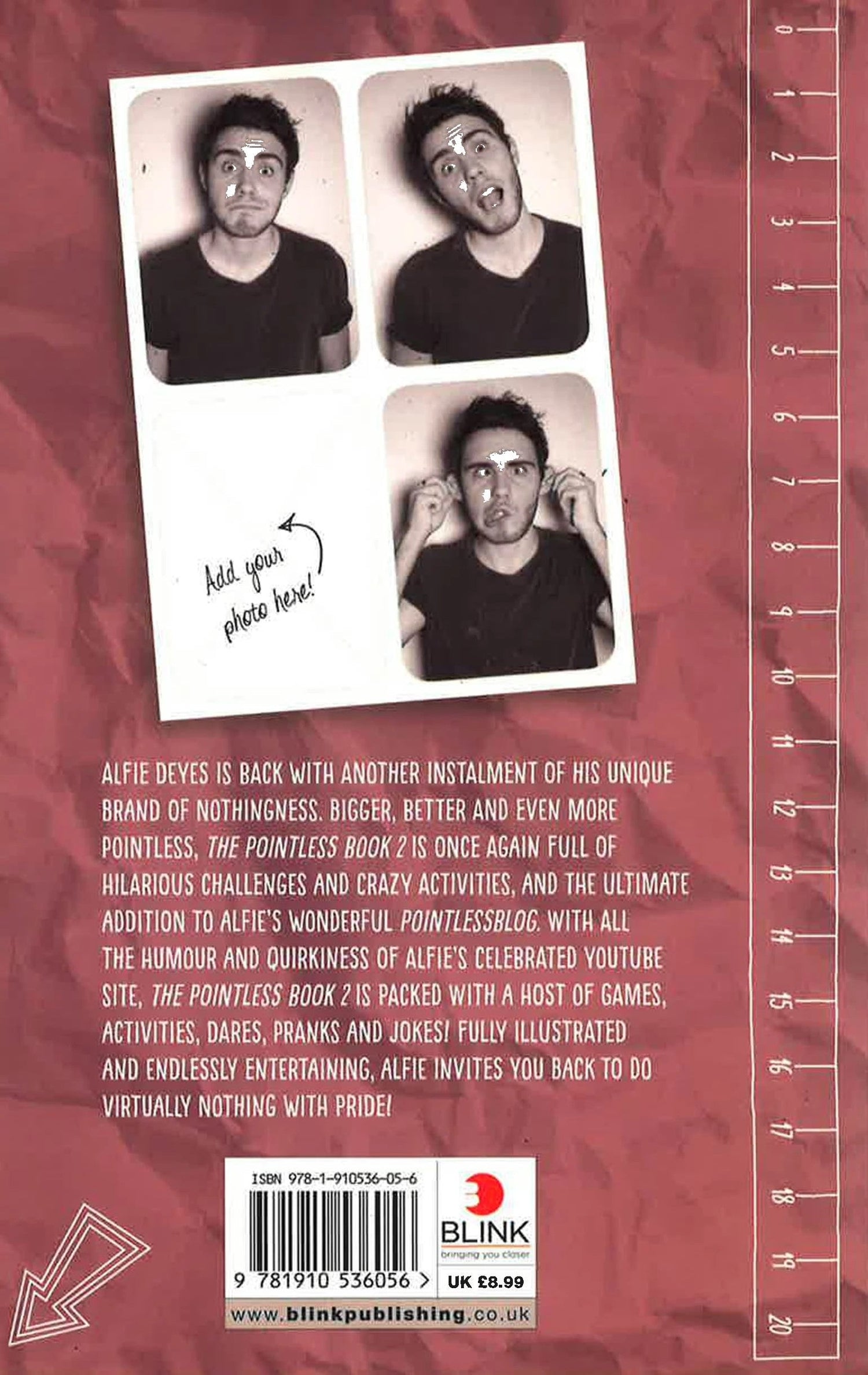 Alfie Deyes is back with another instalment of his unique brand of nothingness. Bigger, better and even more pointless,The Pointless Book 2 is once again full of hilarious challenges and crazy activities, and the ultimate accessory to Alfie's wonderful PointlessBlog. With all the humour and quirkiness of Alfie's celebrated YouTube site, Pointless Book 2 is packed with a host of games, activities, dares, pranks and jokes - and, of course, an exclusive digital app to take you closer to Alfie and the PointlessBlog. Fully illustrated and endlessly entertaining, Alfie invites you back to his Pointless party and to once again do virtually nothing with pride!