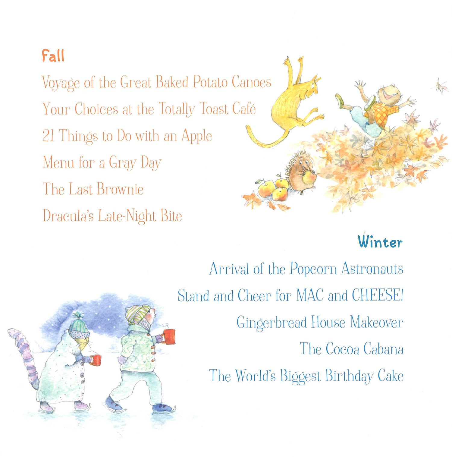 Take a bite out of the calendar with this cheerful collection of delicious seasonal poems, each one an ode to a favorite food! Dive into a watermelon lake and sing the praises of mac and cheese in this playful and poetic celebration of food. In spring, bow to the “Strawberry Queen” and eat “Only Guacamole.” In summer you’ll meet Bob the Ogre, who only eats corn on the cob, and in fall, you can learn “21 Things to Do with an Apple.” And then in winter, retreat from the cold at “The Cocoa Cabana!” Stellar team Deborah Ruddell and Joan Rankin deliver a whimsical celebration of the tastiest treats of life in this palatable poetry collection.
