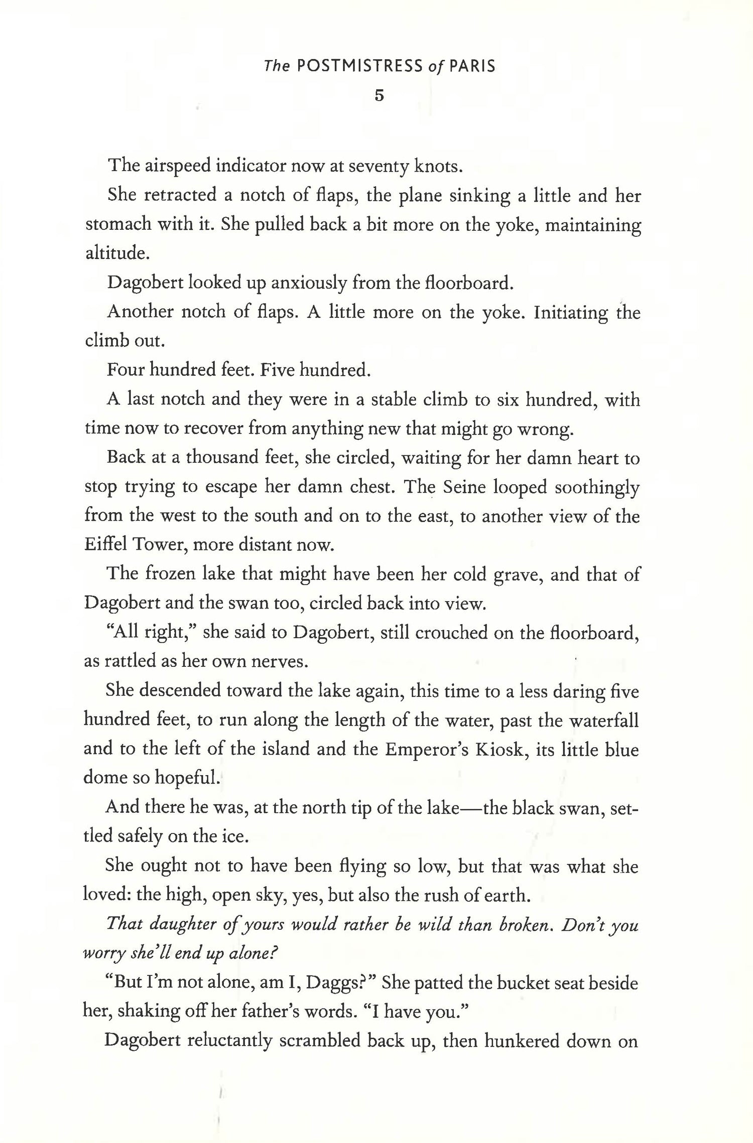 Wealthy, beautiful Naneé was born with a spirit of adventure. For her, learning to fly is freedom. When German tanks roll across the border and into Paris, this woman with an adorable dog and a generous heart joins the resistance. Known as the Postmistress because she delivers information to those in hiding, Naneé uses her charms and skill to house the hunted and deliver them to safety.