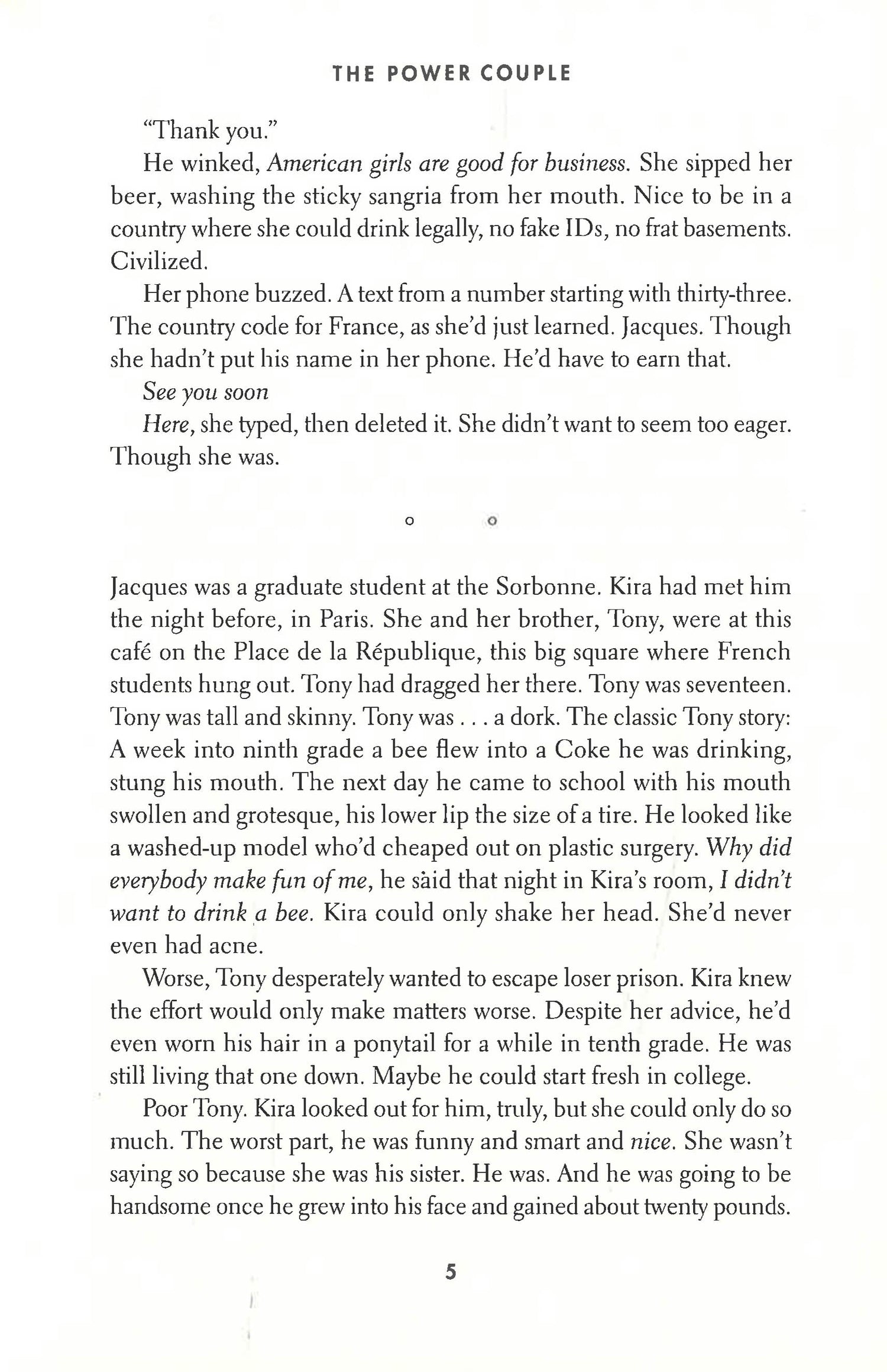 The Power Couple is both a fast-paced, globe-trotting espionage novel full of surprising twists and a nuanced look at modern marriage—the challenges of balancing career, parenthood, sex, and love.