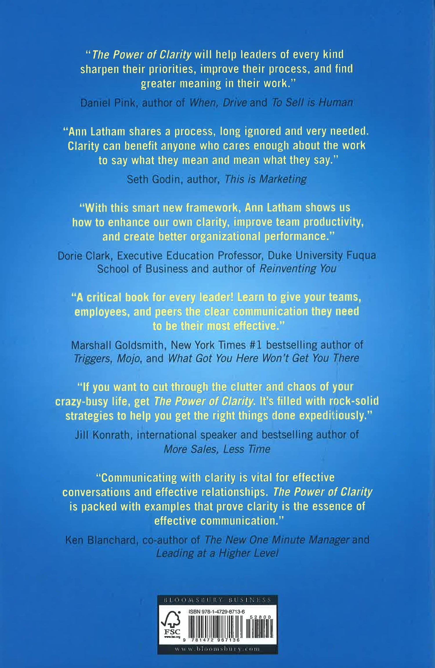 In The Power of Clarity, Ann Latham exposes the unrecognized confusion and explains how to eliminate it. This fascinating guide to workplace productivity and effectiveness draws upon extensive research and case studies to demonstrate how you can get better results in far less time while also increasing confidence and commitment.