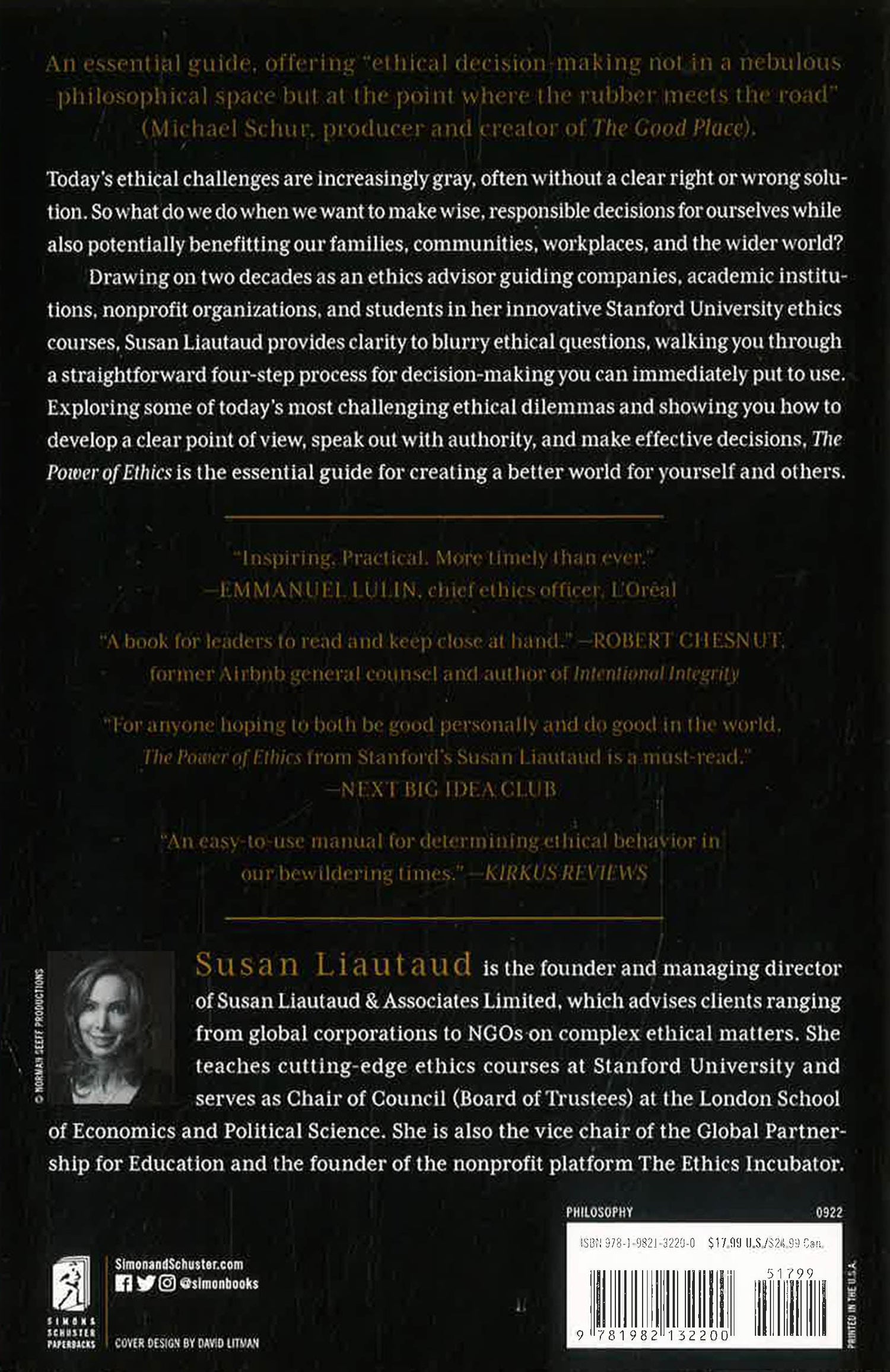 How do we find a way forward? Today’s ethical challenges are increasingly gray, often without a clear right or wrong solution, causing us to teeter on the edge of effective decision-making. With concentrated power structures, rapid advances in technology, and insufficient regulation to protect citizens and consumers, ethics are harder to understand than ever. But in The Power of Ethics, Susan Liautaud offers an “accessible, deep, and compelling” (James Manyika, CEO, McKinsey Global Institute) look at how ethics can be used to create a sea change of positive decisions that can ripple outward to our families, communities, workplaces, and the wider world—offering an unprecedented opportunity for good.