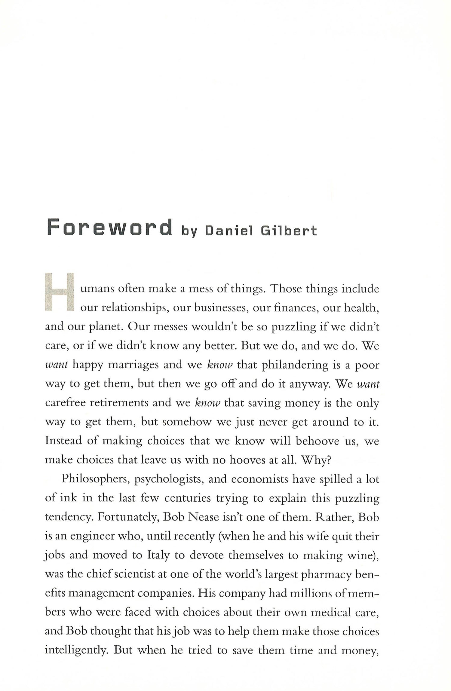 Going beyond the bestsellers Predictably Irrational and Thinking, Fast and Slow, the first "how to" guide that shows you how to help customers, employees, coworkers, and clients make better choices to get what they truly want.Of the ten million bits of information our brains process each second, only fifty bits are devoted to conscious thought. Because our brains are wired to be inattentive, we often choose without thinking, acting against our own interests-what we truly want. As the former Chief Scientist of Express Scripts, a Fortune 25 healthcare company dedicated to making the use of prescription medications safer and more affordable, Bob Nease is an expert on applying behavioral sciences to health care. Now, he applies his knowledge to the wider world, providing important practical solutions marketers, human resources professionals, teachers, and even parents can use to improve the behavior of others around them, and get the positive results they want.Nease offers a set of powerful and effective strategies to change behavior, including: Require Choice-compel people to deliberately choose among options Lock in Good Intentions-allow people to make decisions today about choices they will face in the future Let It Ride-set the default to the desired option and let people opt out if they wish Get in the Flow-go to where peoples' attention is likely to be naturally Reframe the Choices-set the framework people use to consider options and choices Piggyback It-connect the desired choice or behavior with something they already like or are engaged in Simplify . . . Wisely-make right choices frictionless and easy, make wrong choices more difficult And more. * This book may have reminder mark*
