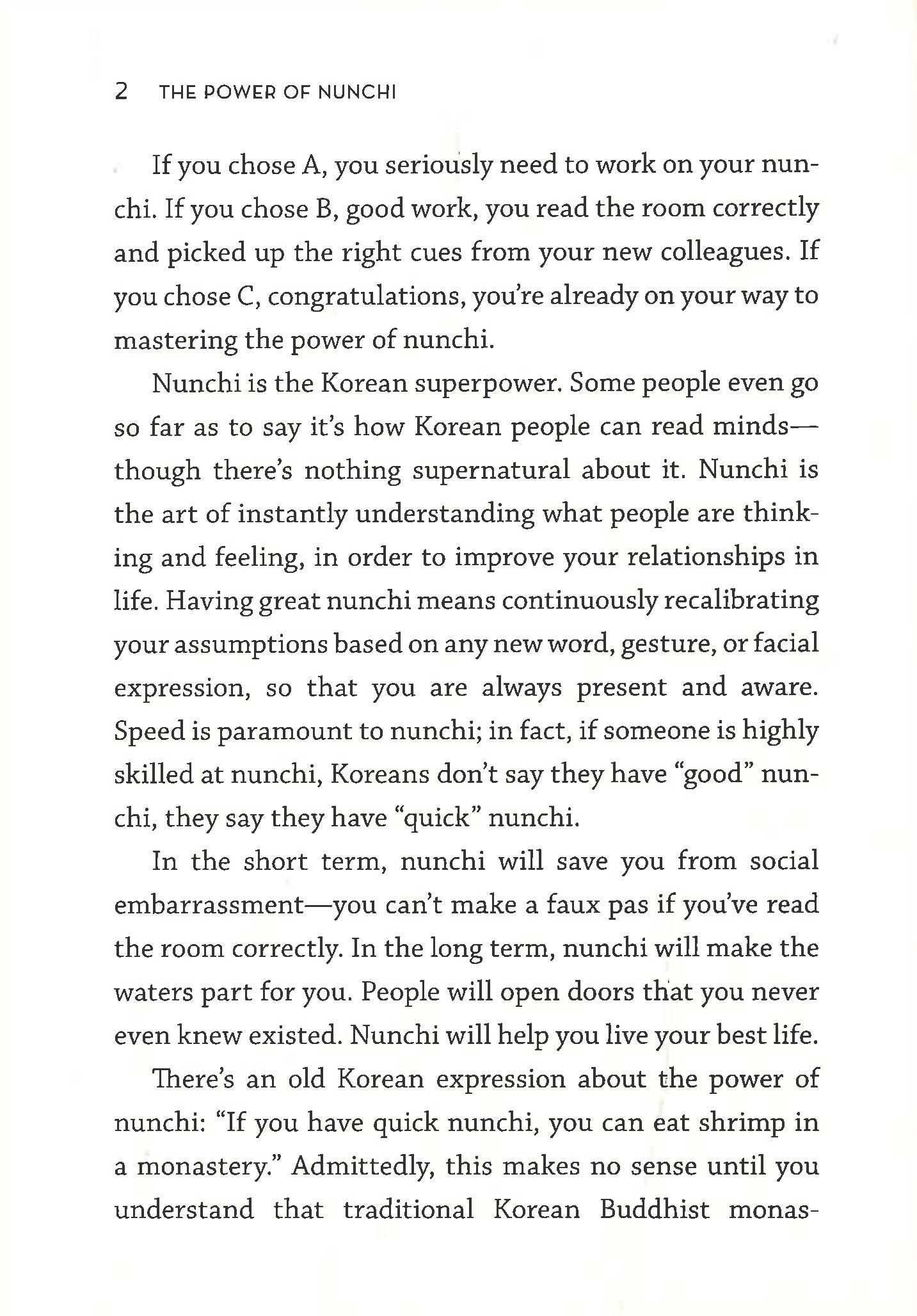 The Korean sixth sense for winning friends and influencing people, nunchi (pronounced noon-chee) can help you connect with others so you can succeed in everything from business to love. The Power of Nunchi will show you how.
