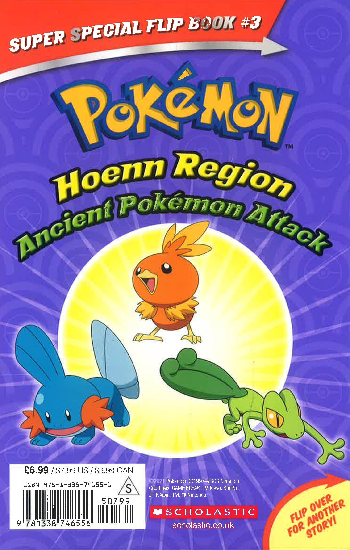 A special edition flipbook featuring two of Ash and Pikachu's adventures in Sinnoh and Hoenn. This special edition is two books in one! Join Ash, Pikachu and friends on action-packed adventures in both the Sinnoh and Hoenn regions. The beloved Trainer and his team take on foes new and old with some amazing Pokemon by their sides.