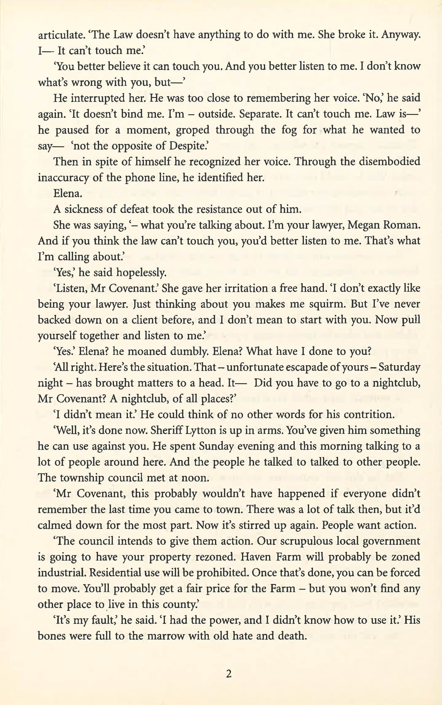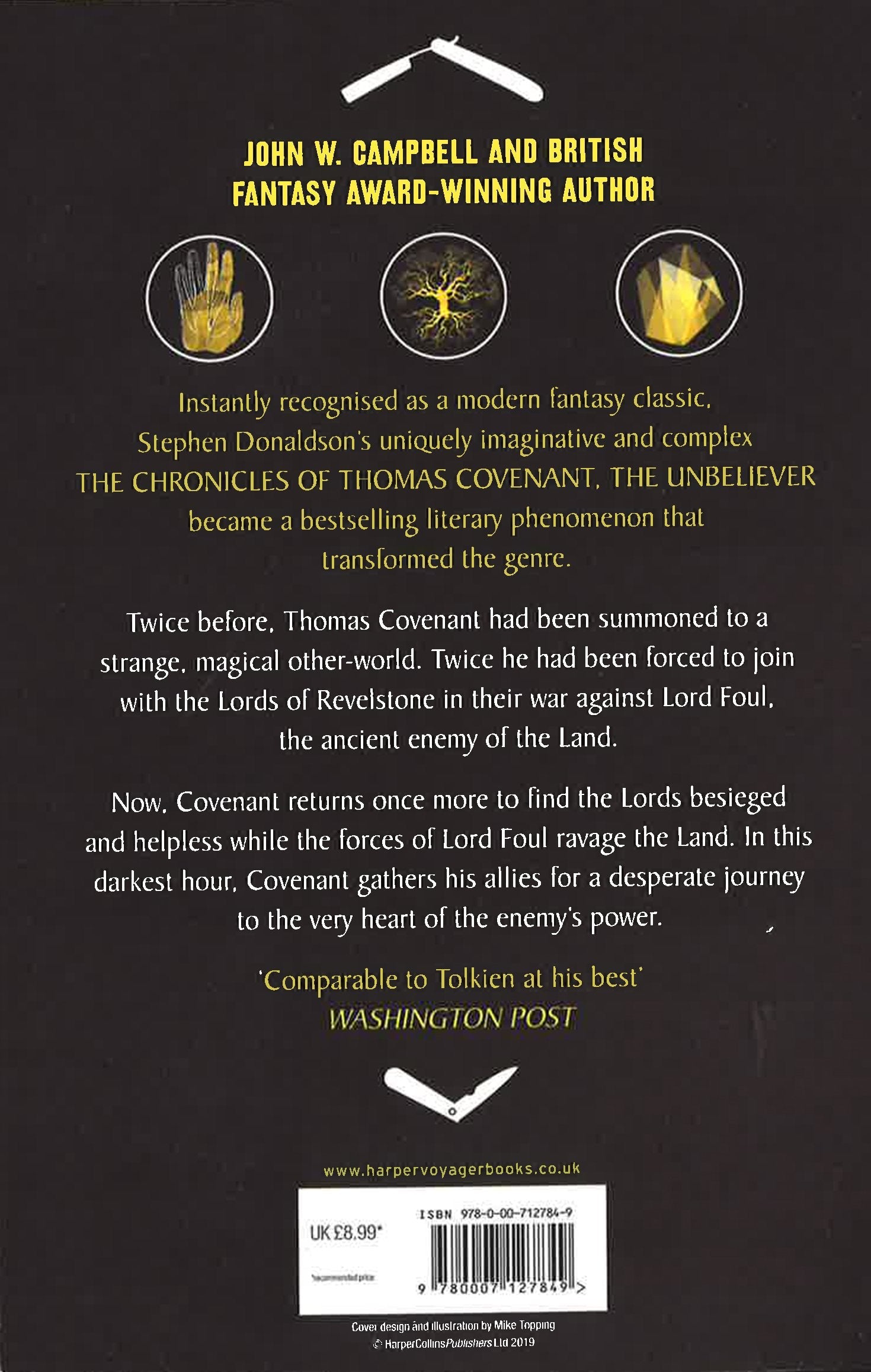 Twice before, Thomas Covenant had been summoned to a strange, magical other-world. Twice he had been forced to join with the Lords of Revelstone in their war against Lord Foul, the ancient enemy of the Land.