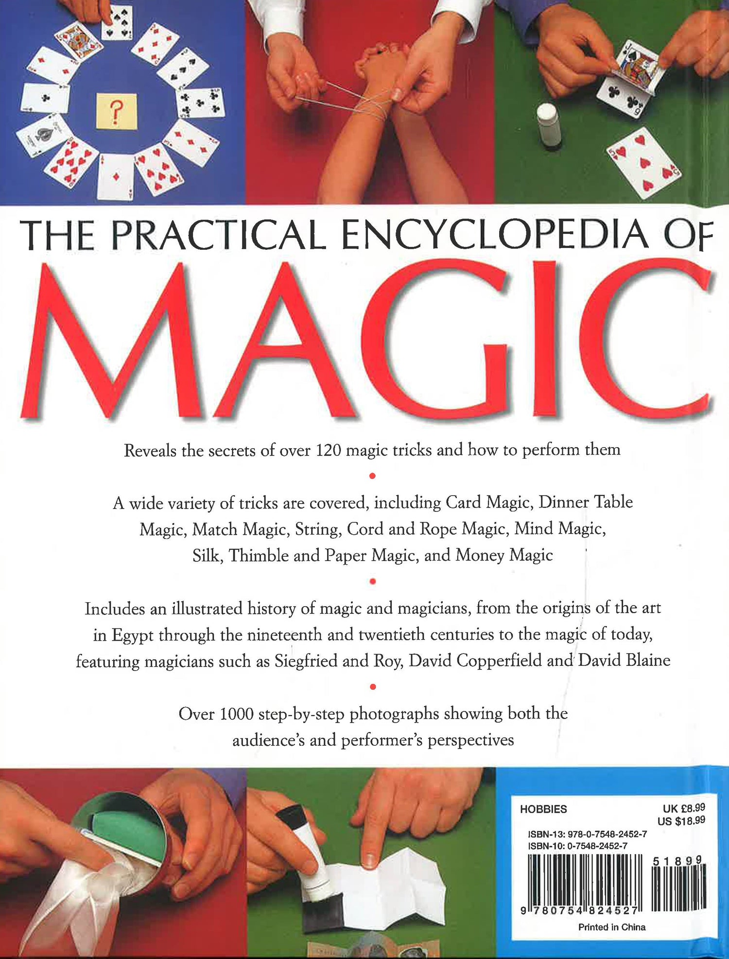 Reveals the secrets of over 120 magic tricks using cards, matches, rope, silk, thimbles and money, shown in over 1000 photographs