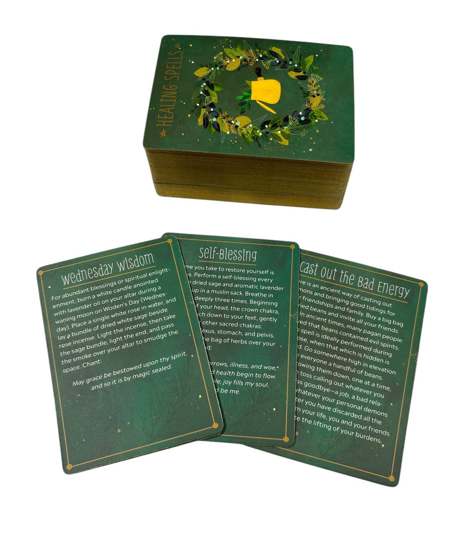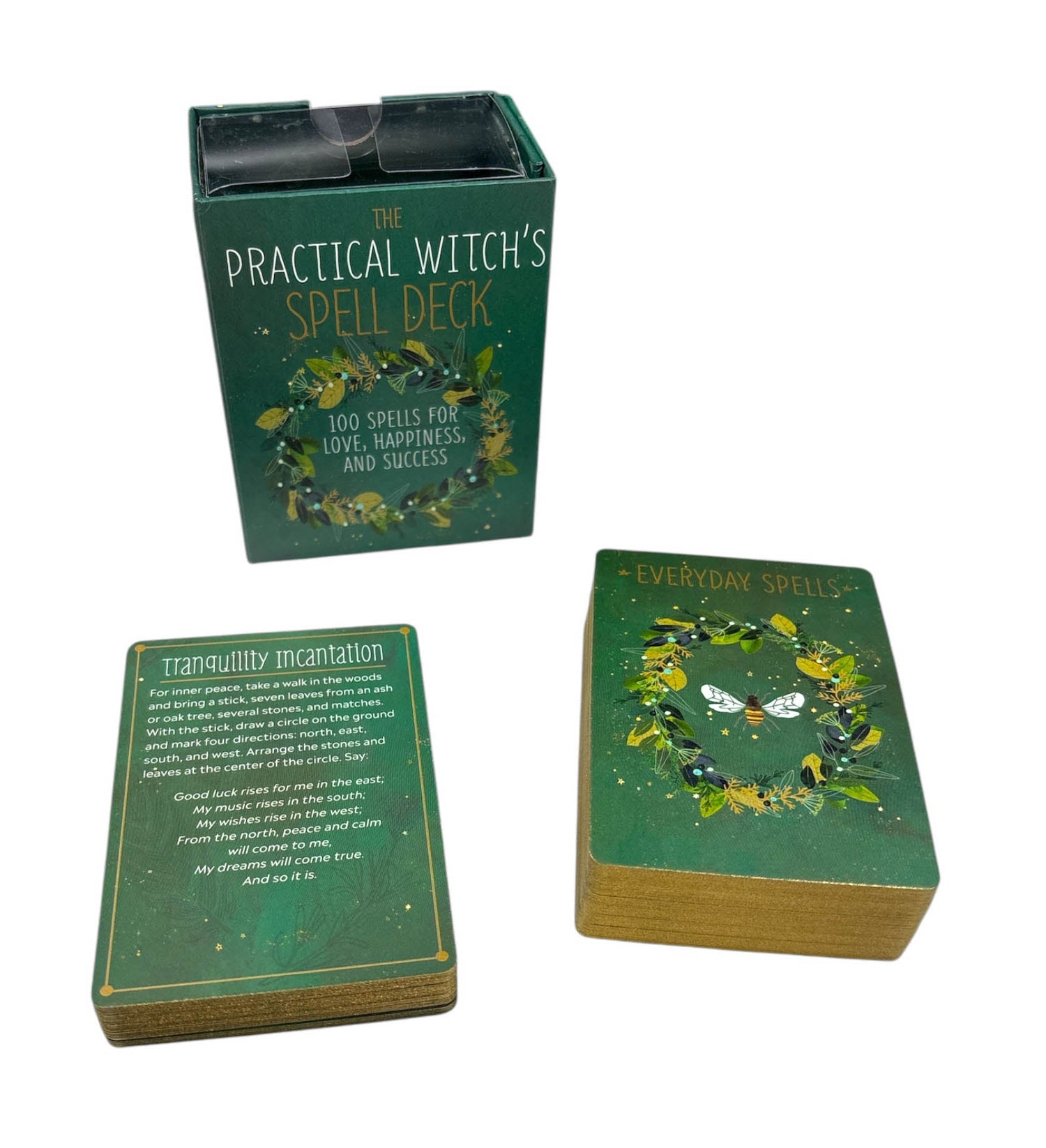 The Practical Witch's Spell Deck is a charming collection of 100 spells for love, joy, prosperity, healing, and more, with an illustrated card deck, an introduction to spells, and a beautiful keepsake box.