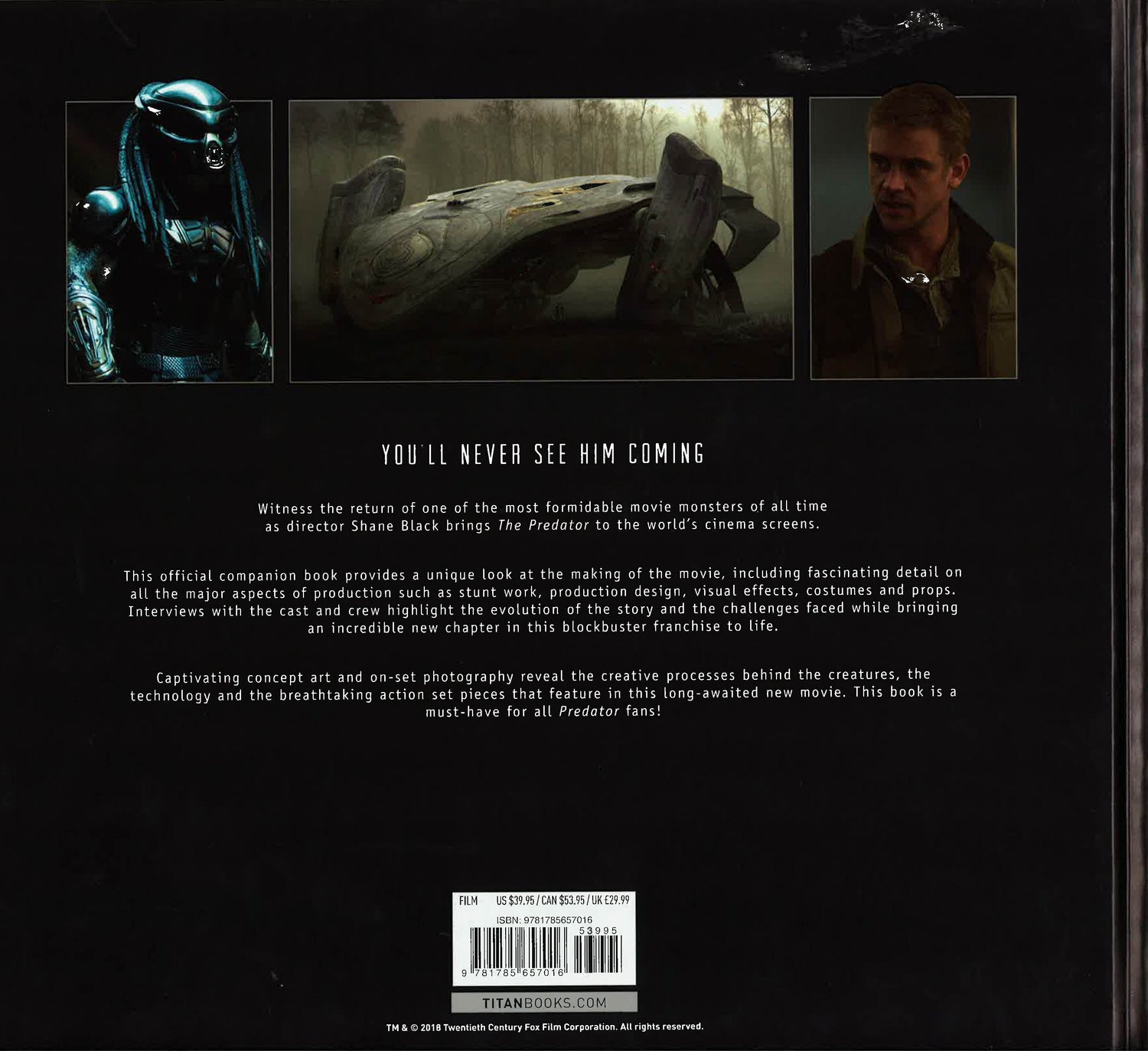 Official companion book to the new blockbuster sci-fi movie from Shane Black, containing stunning concept art and behind-the-scenes photography from the filming process.