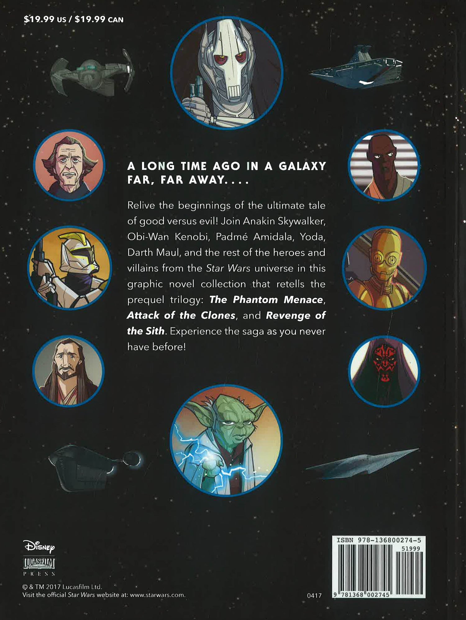 Relive the beginnings of the ultimate tale of good versus evil! Join Obi-Wan Kenobi, Padmé Amidala, Yoda, Darth Maul, and the rest of the heroes and villains from the Star Wars universe in this graphic novel collection that retells the prequel trilogy: The Phantom Menace, Attack of the Clones, and Revenge of the Sith. Experience the saga as you never have before!