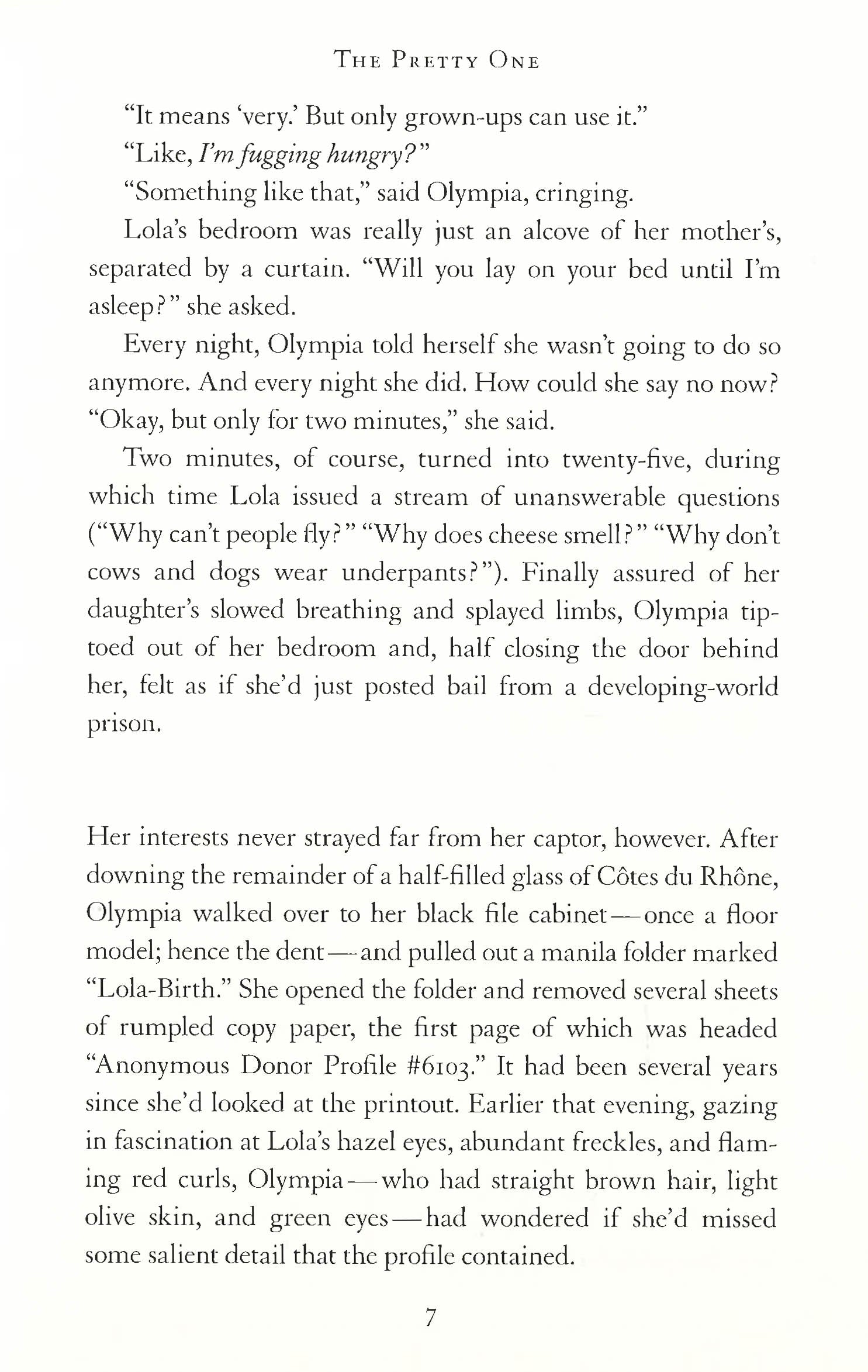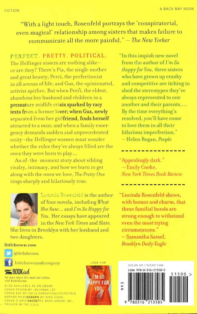 Perfect. Pretty. Political. For nearly forty years, The Hellinger sisters of Hastings-on-Hudson-namely, Imperia (Perri), Olympia (Pia), and Augusta (Gus)--have played the roles set down by their loving but domineering mother Carol. Perri, a mother of three, rules her four-bedroom palace in Westchester with a velvet fist, managing to fold even fitted sheets into immaculate rectangles. Pia, a gorgeous and fashionable Chelsea art gallery worker, still turns heads after becoming a single mother via sperm donation. And Gus, a fiercely independent lawyer and activist, doesn't let her break-up from her girlfriend stop her from attending New Year's Day protests on her way to family brunch. But the Hellinger women aren't pulling off their roles the way they once did. Perri, increasingly filled with rage over the lack of appreciation from her recently unemployed husband Mike, is engaging in a steamy text flirtation with a college fling. Meanwhile Pia, desperate to find someone to share in the pain and joy of raising her three-year-old daughter Lola, can't stop fantasizing about Donor #6103. And Gus, heartbroken over the loss of her girlfriend, finds herself magnetically drawn to Jeff, Mike's frat boy of a little brother. Each woman is unable to believe that anyone, especially her sisters, could understand what it's like to be her. But when a freak accident lands their mother to the hospital, a chain of events is set in motion that will send each Hellinger sister rocketing out of her comfort zone, leaving her to wonder: was this the role she was truly born to play? With The Pretty One, author Lucinda Rosenfeld does for siblings what she did for female friendship in I'm So Happy for You, turning her wickedly funny and sharply observant eye on the pleasures and punishments of lifelong sisterhood.