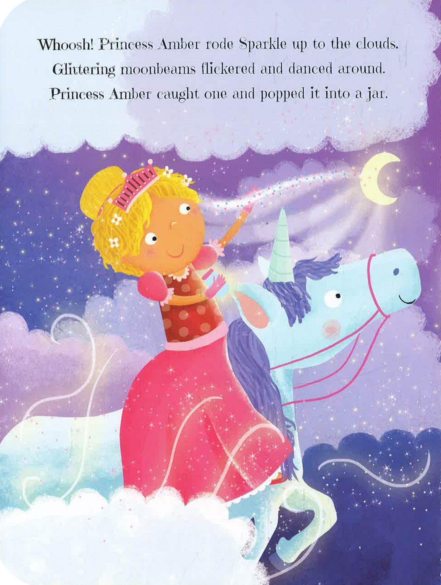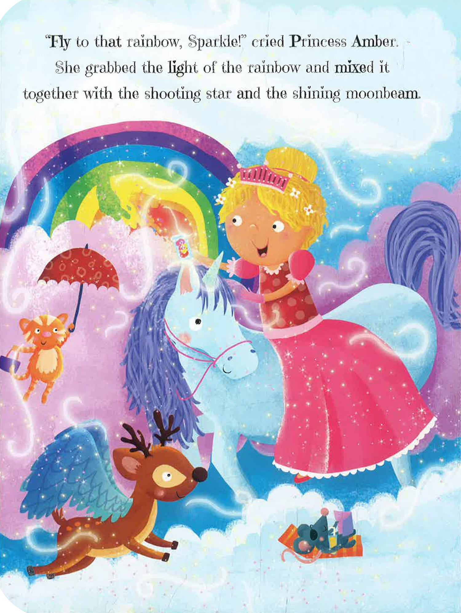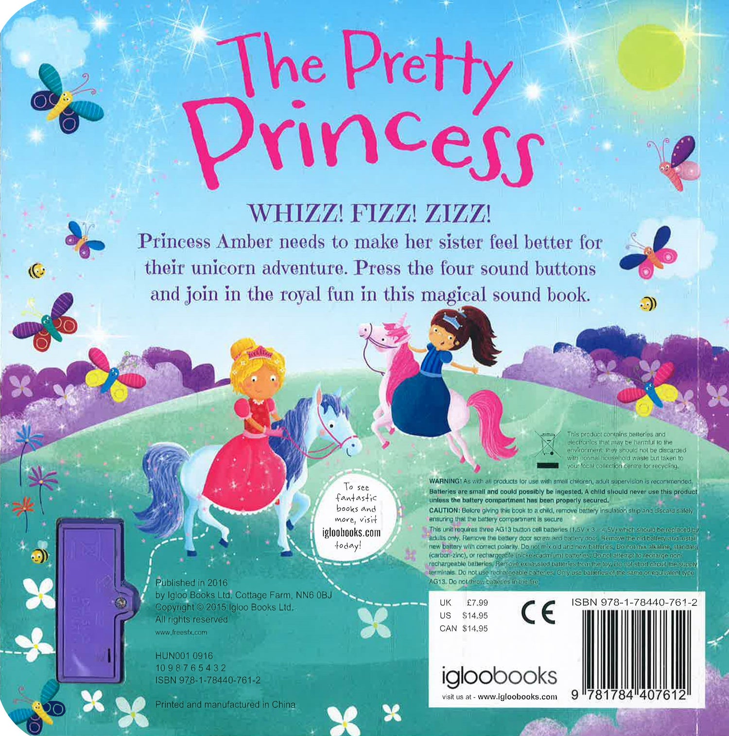 Princess Amber needs to make her sister feel better for their unicorn adventure. Press the four sounds buttons and join in the royal fun in this magical sounds book.