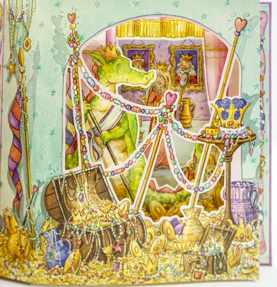A charming princess adventure story, with three-dimensional layered pages for the young reader to explore. Who has stolen the royal jewels? The royal procession cannot go ahead without them, and young Princess Arabelle is not pleased! This was to have been her very first procession - but why are the royal guards so reluctant to track down the thief? She soon learns that a dragon has taken the jewels, because only a dragon loves treasure so much that he would steal from the royal family. The guards are reluctant to take on such a mighty beast, but the Princess is not afraid! Follow Arabelle through royal chambers and out into the moonlit forest as saddles her horse and rides off to find the dragon's cave in the side of the Magic Mountain. However, when she comes face to face with the dragon, the creature is not quite what she had been expecting... Young readers will love this thrilling tale, and the detailed pop-up illustrations will take them right into the heart of the adventure. Peer through windows and explore deep, dark caves as Princess Arabelle heads off in search of the dragon that has dared to steal the royal jewels! - Three-dimensional layered pages allow the reader to explore the charming illustrations. Perfect reading for 4 to 9 year-olds, the sparkly glitter on the cover and on the conclusion of the story enhances children's excitement and enjoyment.