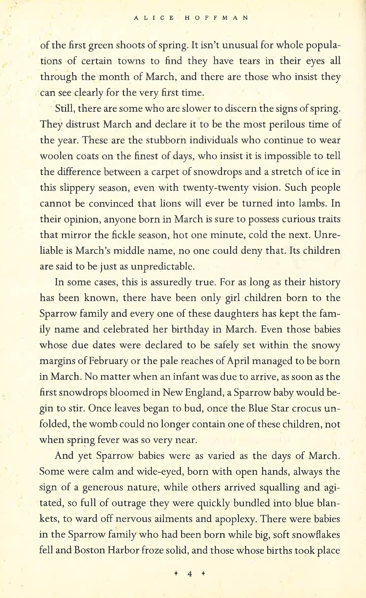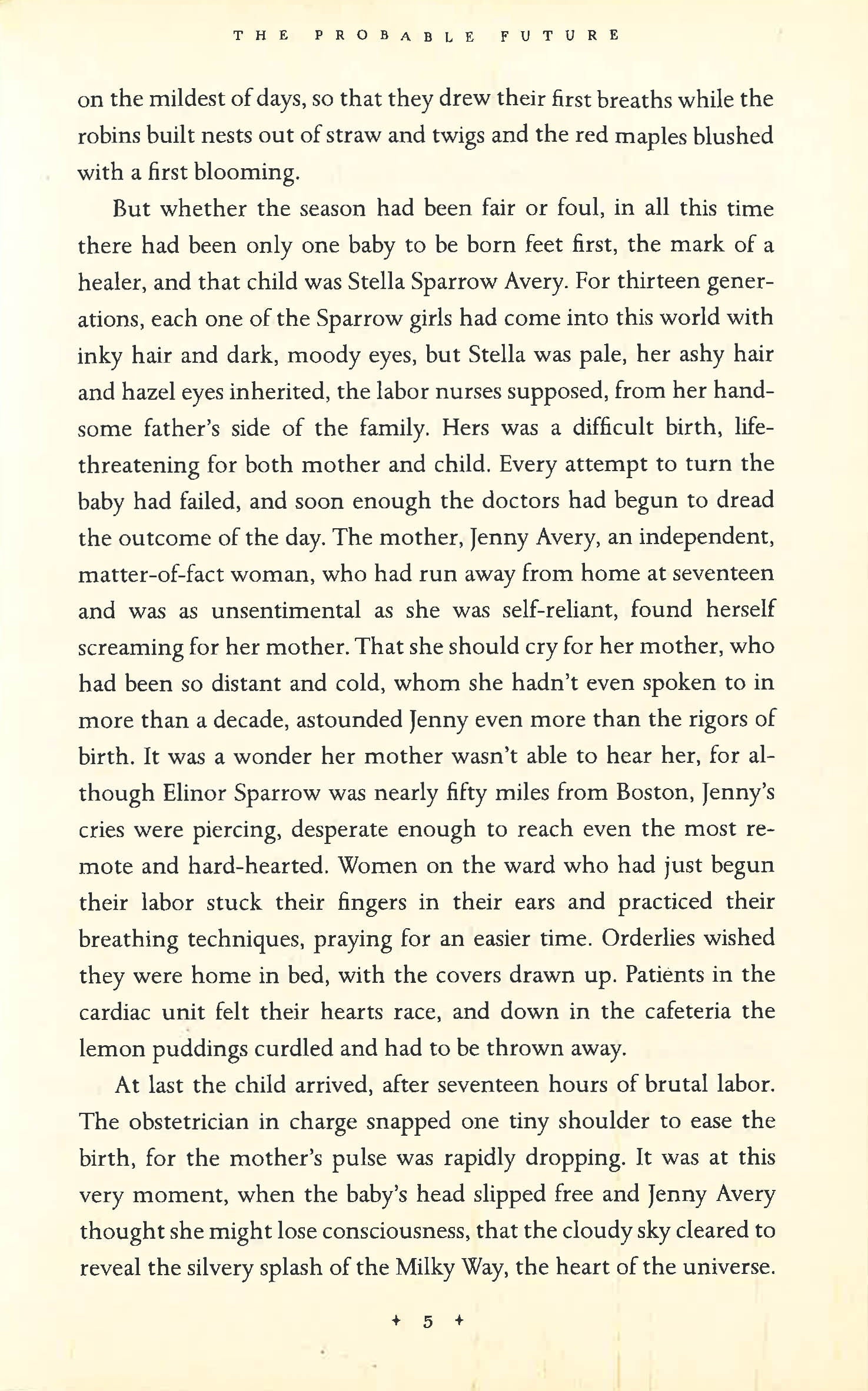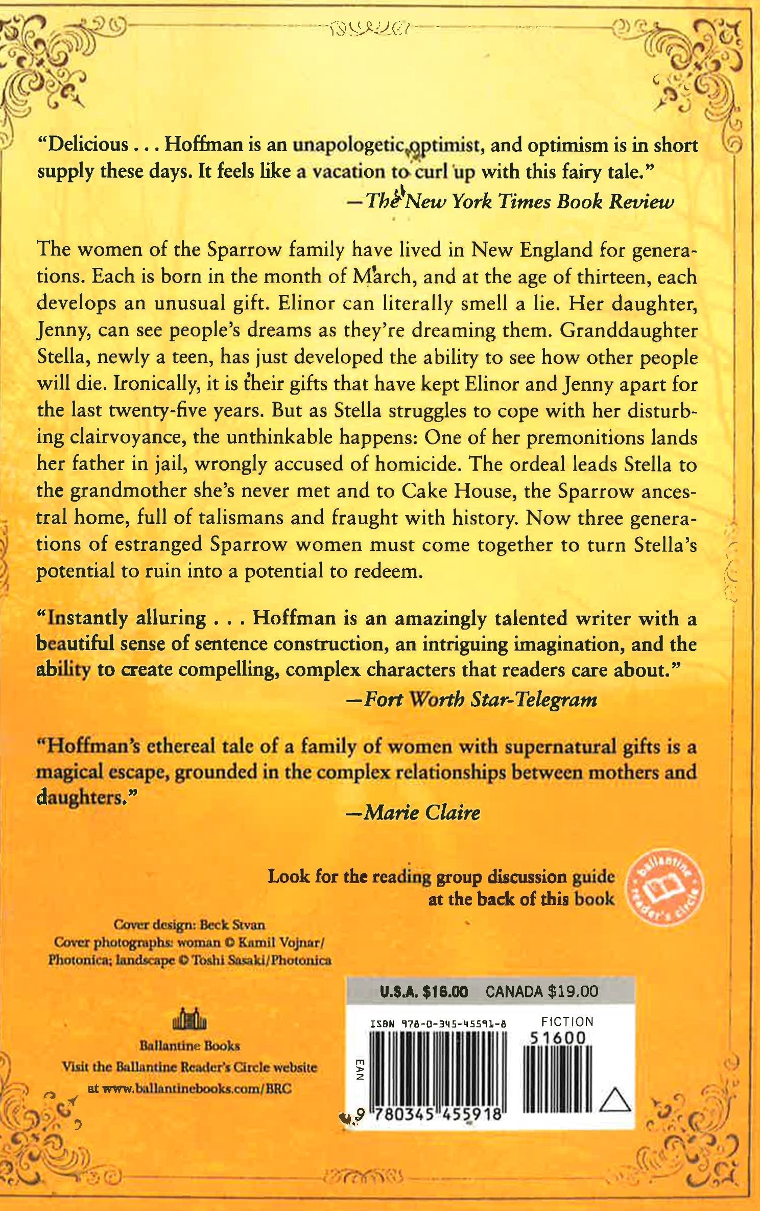 Alice Hoffman's most magical novel to date--three generations of extraordinary women are driven to unite in crisis and discover the rewards of reconciliation and love. Women of the Sparrow family have unusual gifts. Elinor can detect falsehood. Her daughter, Jenny, can see people's dreams when they sleep. Granddaughter Stella has a mental window on the future--a future that she might not want to see. In The Probable Future this vivid and intriguing cast of characters confronts a haunting past--and a very current murder--against the evocative backdrop of small-town New England. By turns chilling and enchanting, The Probable Future chronicles the Sparrows's legacy as young Stella struggles to cope with her disturbing clairvoyance. Her potential to ruin or redeem becomes unbearable when one of her premonitions puts her father in jail, wrongly accused of homicide. Yet this ordeal also leads Stella to the grandmother she was forbidden to meet and to a historic family home full of talismans from her ancestors. Poignant, arresting, unsettling, The Probable Future showcases the lavish literary gifts that have made Alice Hoffman one of America's most treasured writers. Praise for The Probable Future "A thrilling adventure of literary alchemy . . . A magical, mystical tour de force of pure entertainment."--The Seattle Times "Delicious . . . Hoffman is an unapologetic optimist, and optimism is in short supply these days. It feels like a vacation to curl up with [The Probable Future]."--The New York Times Book Review "Instantly alluring . . . A mysterious, modern-day fairy tale . . . Hoffman is an amazingly talented writer with a beautiful sense of sentence construction, an intriguing imagination, and the ability to create compelling, complex characters that readers care about."--Fort Worth Star-Telegram "Hoffman's ethereal tale of a family of women with supernatural gifts is a magical escape, grounded in the complex relationships between mothers and daughters."--Marie Claire *This book may have remainder mark*