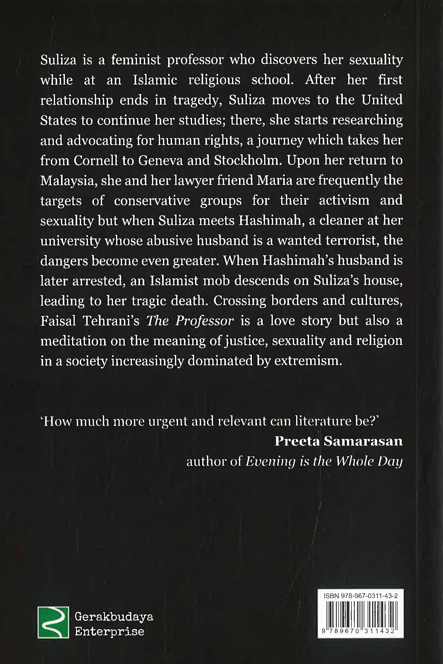 Suliza is a feminist professor who discovers her sexuality while at an Islamic religious school. After her first relationship ends in tragedy, Suliza moves to the United States to continue her studies; there, she starts researching and advocating for human rights, a journey which takes her from Cornell to Geneva and Stockholm.Upon her return to Malaysia, she and her lawyer friend Maria are frequently the targets of conservative groups for their activism and sexuality but when Suliza meets Hashimah, a cleaner at her university whose abusive husband is a wanted terrorist, the dangers become even greater. When Hashimah’s husband is arrested an Islamist mob descends on Suliza’s house, leading to her tragic death. Crossing borders and cultures, Faisal Tehrani’s The Professor is a love story but also a mediation on the meaning of justice, sexuality and religion in a society increasingly dominated by extremism.
