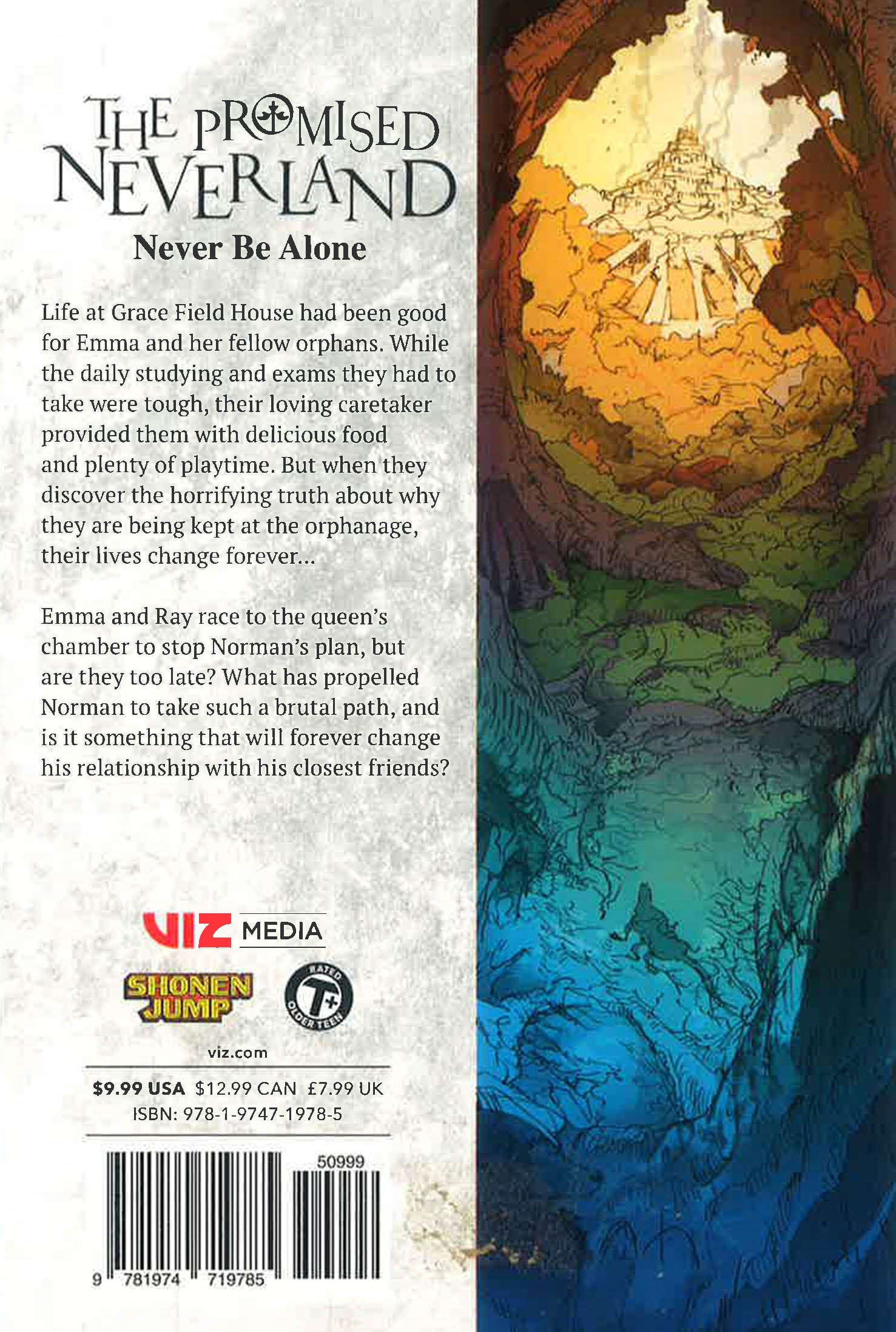 The children of the Grace Field House orphanage must escape a macabre fate before it’s too late.Life at Grace Field House had been good for Emma and her fellow orphans. While the daily studying and exams they had to take were tough, their loving caretaker provided them with delicious food and plenty of playtime. But when they discover the horrifying truth about why they are being kept at the orphanage, their lives change forever…Emma and Ray race to the queen’s chamber to stop Norman’s plan, but are they too late? What has propelled Norman to take such a brutal path, and is it something that will forever change his relationship with his closest friends?