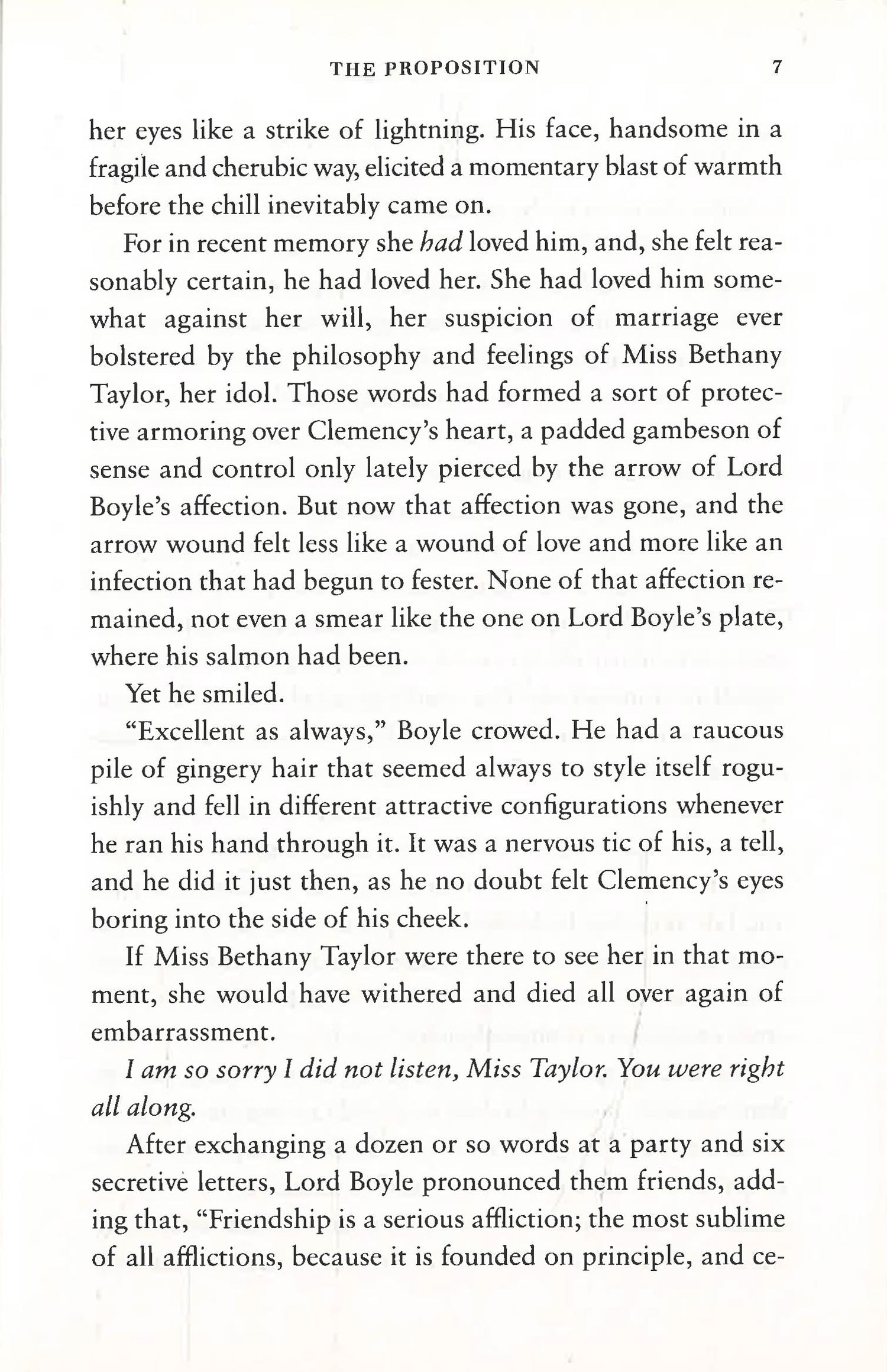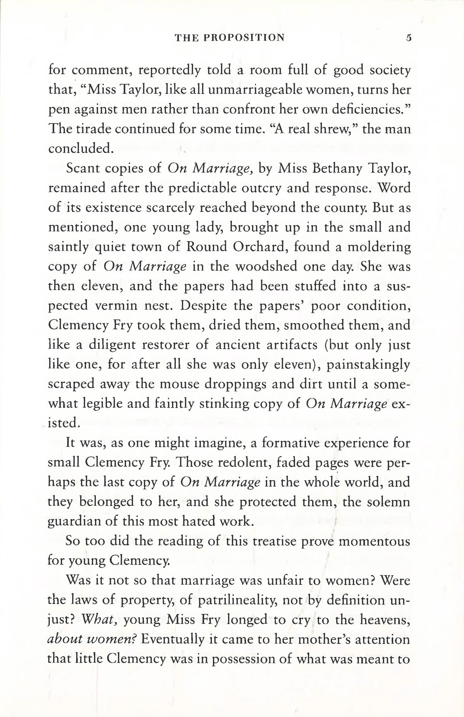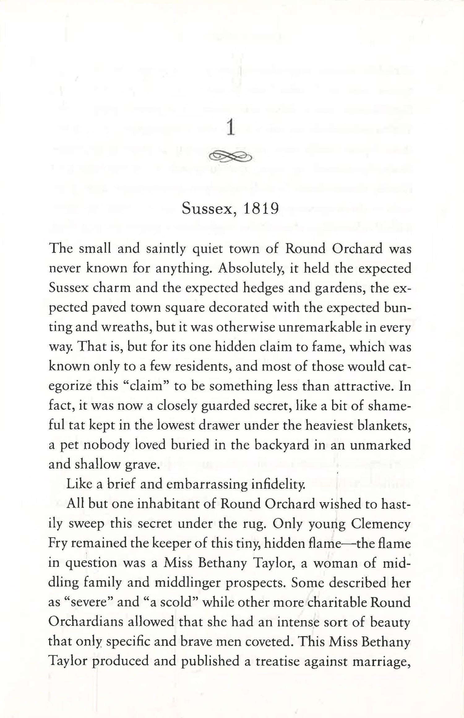 Clemency Fry has always been certain that marriage is a ludicrous arrangement—a notion she has believed ever since reading a scandalous feminist treatise as a girl. But her outlook on romance suddenly changes after meeting the handsome Lord Boyle. With promises of a different sort of union, one with mutual respect and financial security for her family, Clemency is won over, but when the wedding is set and the plans are in motion, Lord Boyle turns cold and dismissive. Clemency fears the worst has come to fruition; she had been right all along about affairs of the heart. She has fallen into the one trap she swore she never would.