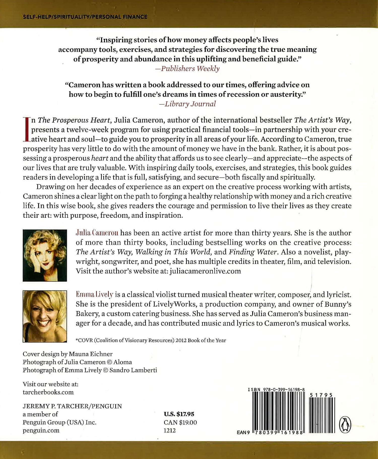 A dynamic new creative-renewal program from the woman who has inspired millions to discover and recover their creative souls. In The Prosperous Heart , Julia Cameron presents a ten-week program for using your creative heart and soul to lead you to prosperity in all the areas of your life. With inspiring new daily tools and strategies that follow in the footsteps of Cameron's groundbreaking The Artist's Way, this book guides readers in developing a life that is as full and as satisfying as they ever thought possible. Drawing on her decades of experience working with artists as an expert on the creative process, Cameron shines a clear light on the path to forging a direct relationship between the passion that ignites our creative work and the more practical aspects of living our lives (for example, how one can keep a roof over their head without losing track of their soul!) In this wise volume, Cameron gives readers the courage and permission to live their lives as they create their art: purposely and fully.