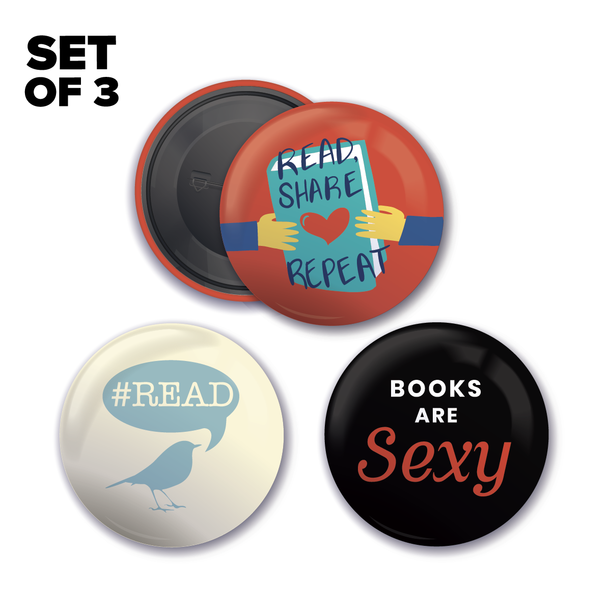 Set of 3 button badges created exclusively to celebrate Bookxcess 13th Anniversary