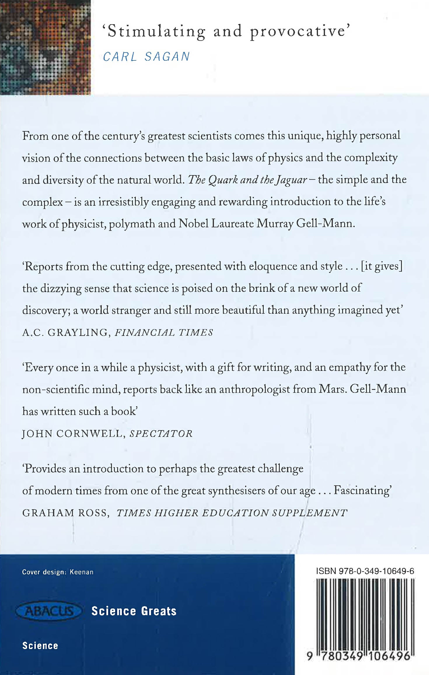 This book is about how the wonderful diversity of the universe can arise out of a set of fairly simple basic laws. It is written by an expert in both the fundamental laws and the complex structures that they can produce.' Stephen Hawking's acclaim of Murray Gell-Mann's literary debut is typical of the reception the book received on first publication in 1994.