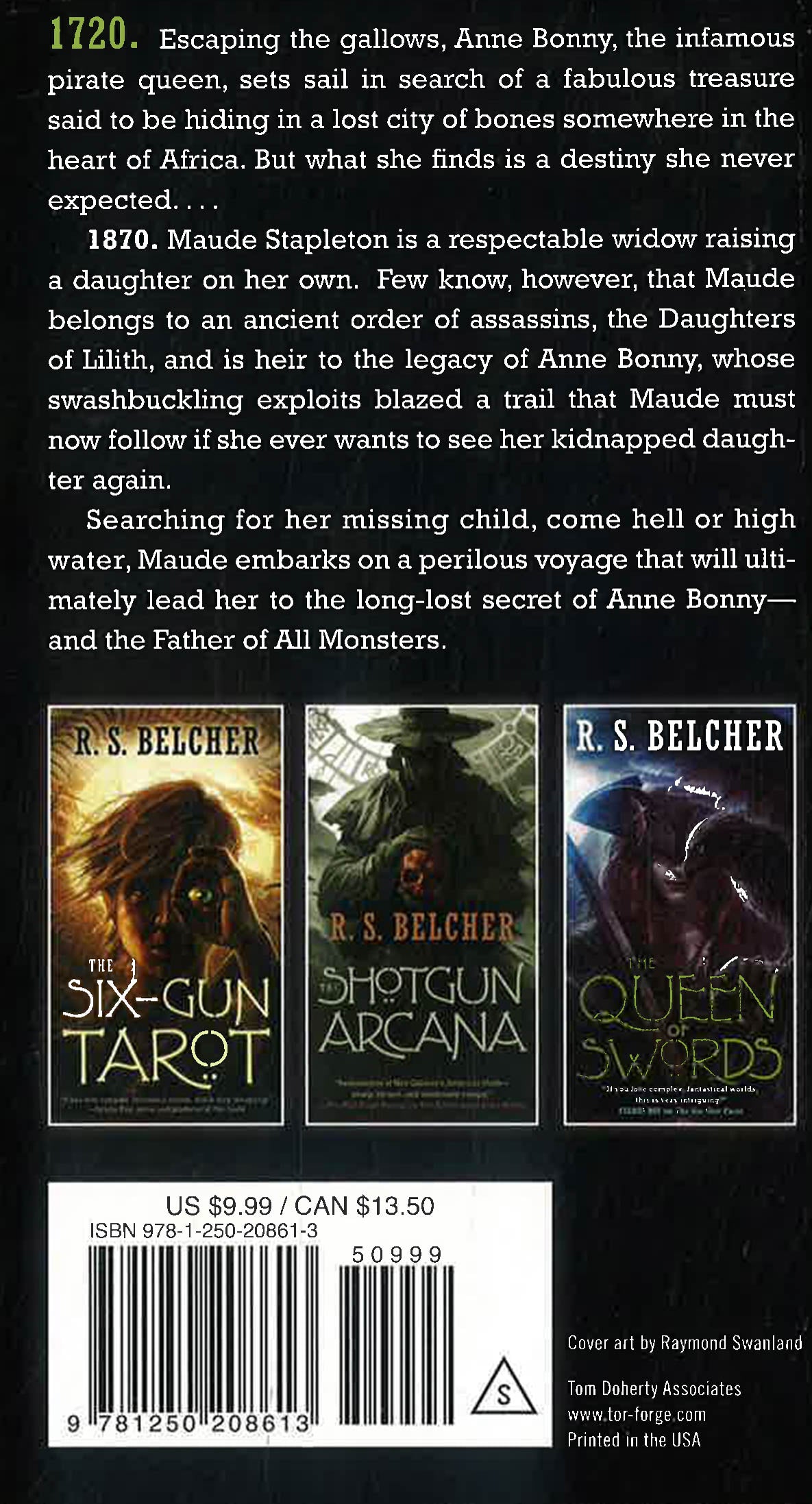 1720. Escaping the gallows, Anne Bonney, the infamous pirate queen, sets sail in search of a fabulous treasure said to be hiding in a lost city of bones somewhere in the heart of Africa. But what she finds is a destiny she never expected . . . . 1870. Maude Stapleton is a respectable widow raising a daughter on her own. Few know, however, that Maude belongs to an ancient order of assassins, the Daughters of Lilith, and heir to the legacy of Anne Bonney, whose swashbuckling exploits blazed a trail that Maude must now follow - if she ever wants to see her kidnapped daughter again! Searching for her missing child, come hell or high water, Maude finds herself caught in the middle of a secret war between the Daughters of Lilith and their ancestral enemies, the monstrous Sons of Typhon, inhuman creatures spawned by primordial darkness, she embarks on a perilous voyage that will ultimately lead her to the long-lost secret of Anne Bonney - and the Father of All Monsters.