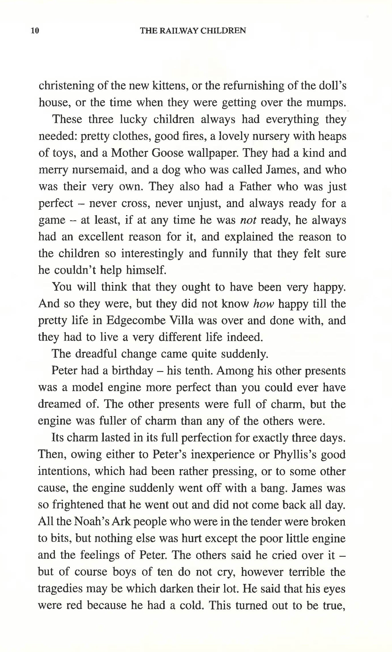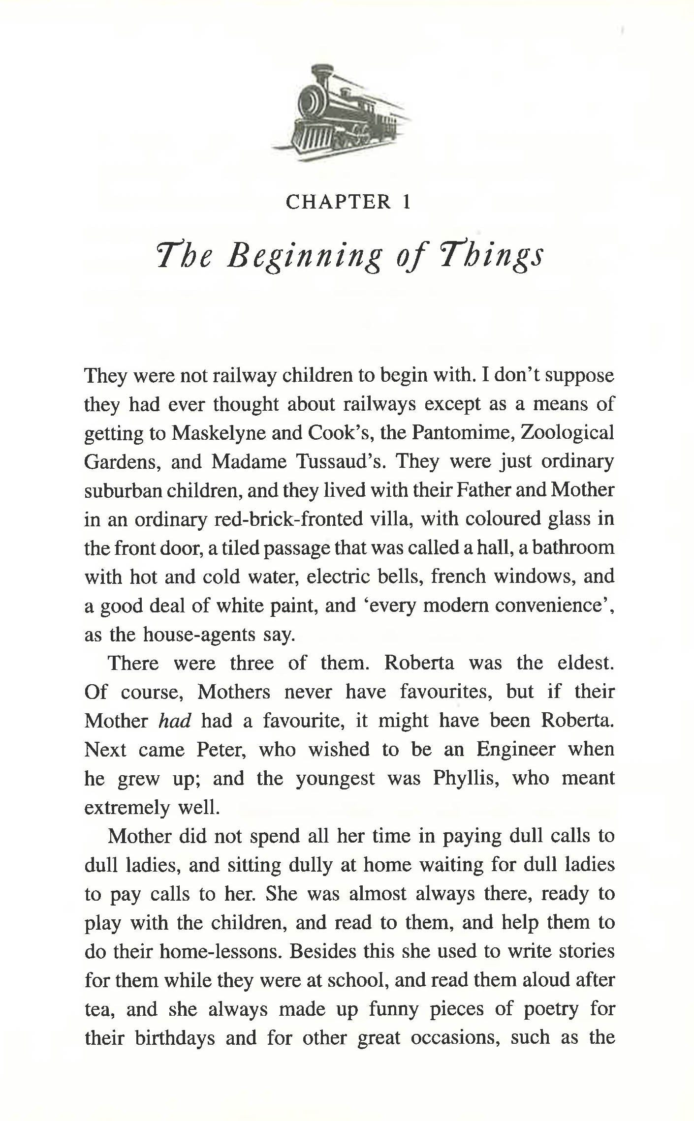 When their father mysteriously imprisoned, Roberta, Peter, Phyllis and their mother have to leave their happy life in London to live in a small cottage in the country. There they take comfort in the nearby railway station, and discover that the gentlemen who takes the same train every day might be the key to proving their father's innocence. Originally published as a serialization in The London Magazine, The Railway Children has remained an enormously popular story about the joy and excitement of being young.