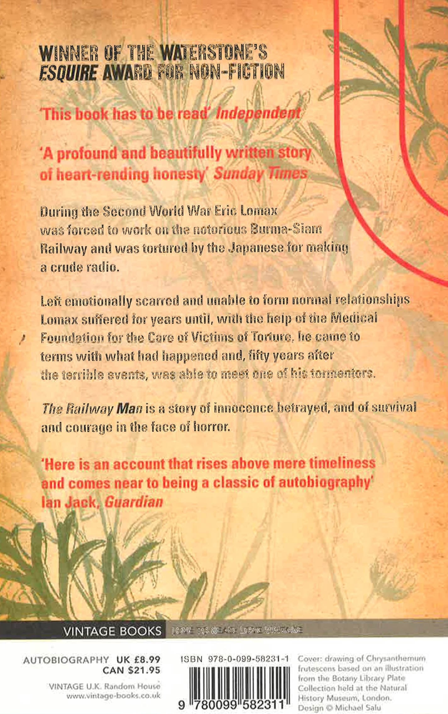 A naive young man, a railway enthusiast and radio buff, was caught up in the fall of the British Empire at Singapore in 1942. He was put to work on the 'Railway of Death' - the Japanese line from Thailand to Burma. Exhaustively and brutally tortured by the Japanese for making a crude radio, Lomax was emotionally ruined by his experiences. Almost 50 years after the war, however, his life was changed by the discovery that his interrogator, the Japanese interpreter, was still alive - their reconciliation is the culmination of this extraordinary story.