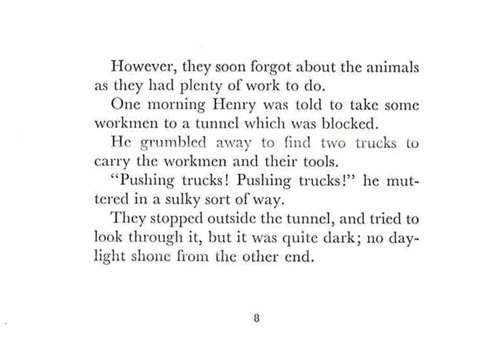 Eight volumes from the original Railway Series. Each book contains an exciting illustrated adventure.This book tells how Henry meets an elephant and James spins round like a top, how the Fat Controller deals with the bigger engines who are Getting Above Themselves and being troublesome, and how a new engine called Percy comes to the rescue by running away.