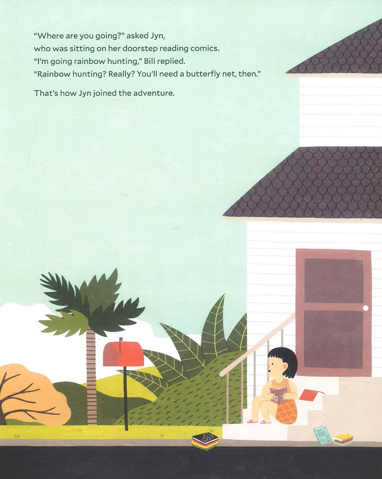 One beautiful morning, four very determined friends set out to go rainbow hunting. Candy and butterfly nets in hand, the foursome rushes all across the countryside to catch the elusive rainbow before it fades away. Hoping to find a pot of gold at the end of their chase, the kids instead happen upon an unexpected and important discovery.